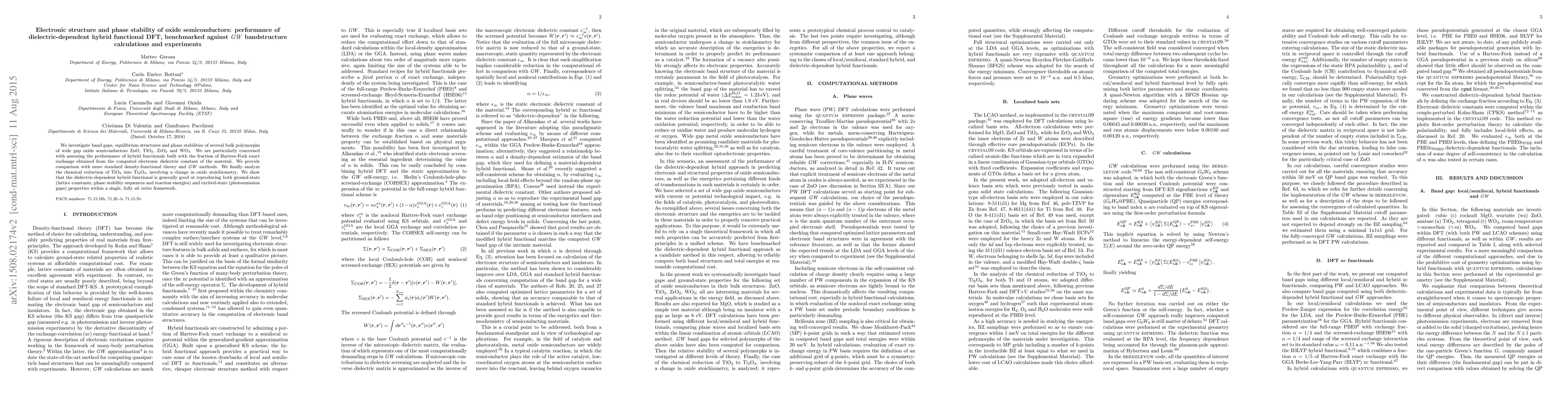 We investigate band gaps, equilibrium structures, and phase stabilities of several bulk polymorphs of wide-gap oxide semiconductors ZnO, TiO2,ZrO2, and WO3. We are particularly concerned with assessing the performance of hybrid functionals built with the fraction of Hartree-Fock exact exchange obtained from the computed electronic dielectric constant of the material. We provide comparison with more standard density-functional theory and GW methods. We finally analyze the chemical reduction of TiO2 into Ti2O3, involving a change in oxide stoichiometry. We show that the dielectric-dependent hybrid functional is generally good at reproducing both ground-state (lattice constants, phase stability sequences, and reaction energies) and excited-state (photoemission gaps) properties within a single, fully ab initio framework.