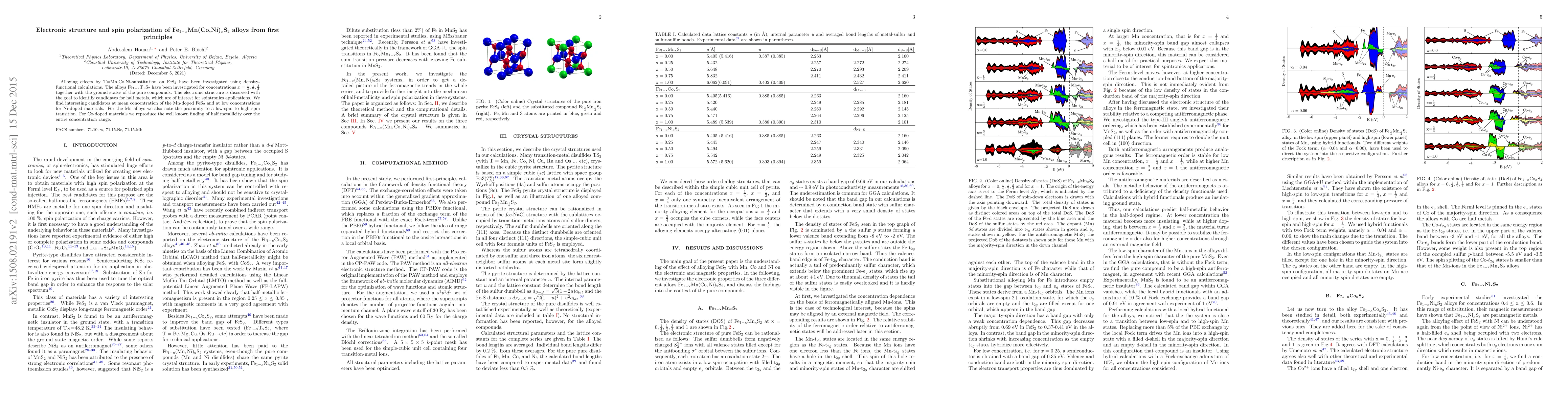 Summary: Density-functional calculations reveal that Fe$_{1-x}$Mn$_x$S$_2$ alloys at high concentrations and Fe$_{1-x}$Ni$_x$S$_2$ at low concentrations are promising candidates for half metals in spintronics. Co-doped materials maintain half metallicity across all concentrations. Mn-doped alloys exhibit a potential low-spin to high-spin transition.