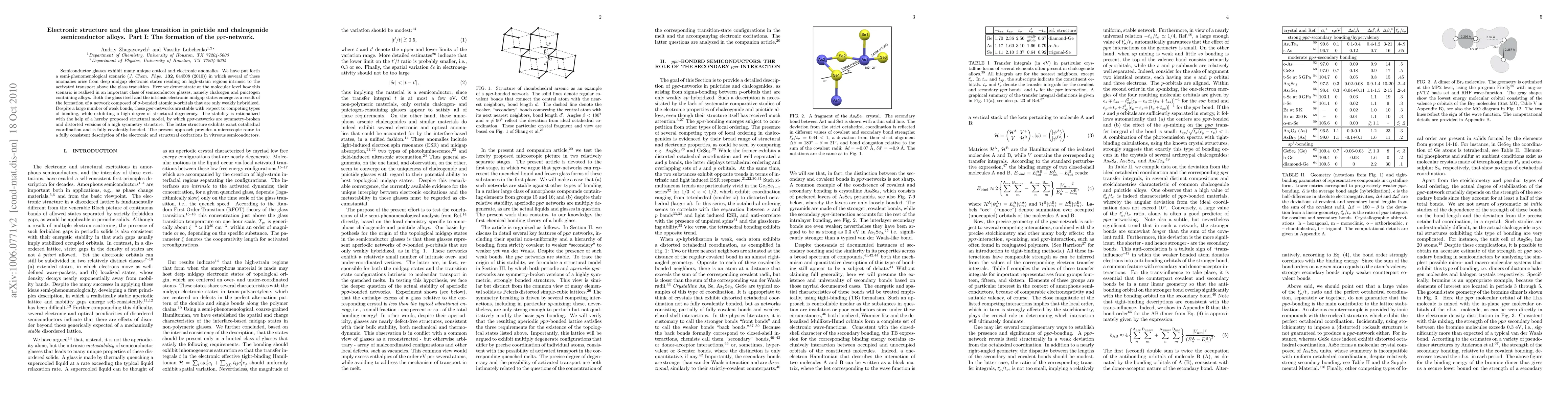 Semiconductor glasses exhibit many unique optical and electronic anomalies. We have put forth a semi-phenomenological scenario (J. Chem. Phys. 132, 044508 (2010)) in which several of these anomalies arise from deep midgap electronic states residing on high-strain regions intrinsic to the activated transport above the glass transition. Here we demonstrate at the molecular level how this scenario is realized in an important class of semiconductor glasses, namely chalcogen and pnictogen containing alloys. Both the glass itself and the intrinsic electronic midgap states emerge as a result of the formation of a network composed of $\sigma$-bonded atomic $p$-orbitals that are only weakly hybridized. Despite a large number of weak bonds, these $pp\sigma$-networks are stable with respect to competing types of bonding, while exhibiting a high degree of structural degeneracy. The stability is rationalized with the help of a hereby proposed structural model, by which $pp\sigma$-networks are symmetry-broken and distorted versions of a high symmetry structure. The latter structure exhibits exact octahedral coordination and is fully covalently-bonded. The present approach provides a microscopic route to a fully consistent description of the electronic and structural excitations in vitreous semiconductors.