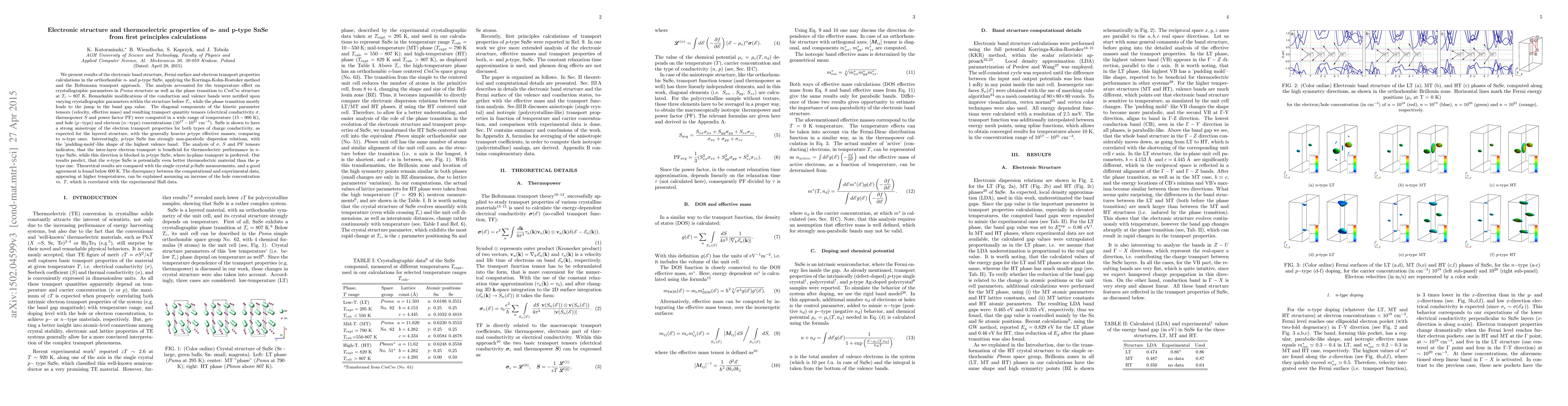 This paper investigates the electronic structure and thermoelectric properties of SnSe using first principles calculations, revealing significant anisotropy in electron transport properties due to its layered structure. The analysis suggests that n-type SnSe could be a superior thermoelectric material compared to p-type SnSe, with inter-layer transport enhancing its performance.