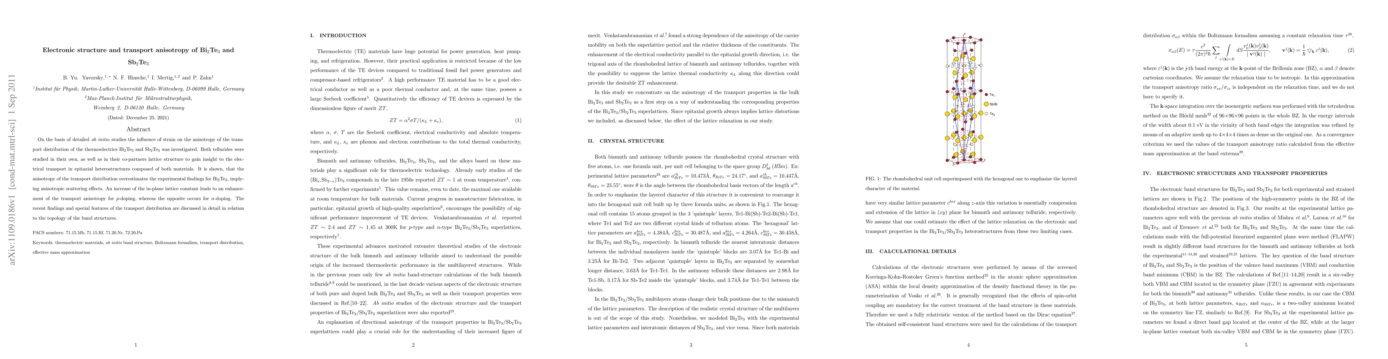 On the basis of detailed ab initio studies the influence of strain on the anisotropy of the transport distribution of the thermoelectrics Bi$_2$Te$_3$ and Sb$_2$Te$_3$ was investigated. Both tellurides were studied in their own, as well as in their co-partners lattice structure to gain insight to the electrical transport in epitaxial heterostructures composed of both materials. It is shown, that the anisotropy of the transport distribution overestimates the experimental findings for Bi$_2$Te$_3$, implying anisotropic scattering effects. An increase of the in-plane lattice constant leads to an enhancement of the transport anisotropy for $p$-doping, whereas the opposite occurs for $n$-doping. The recent findings and special features of the transport distribution are discussed in detail in relation to the topology of the band structures.