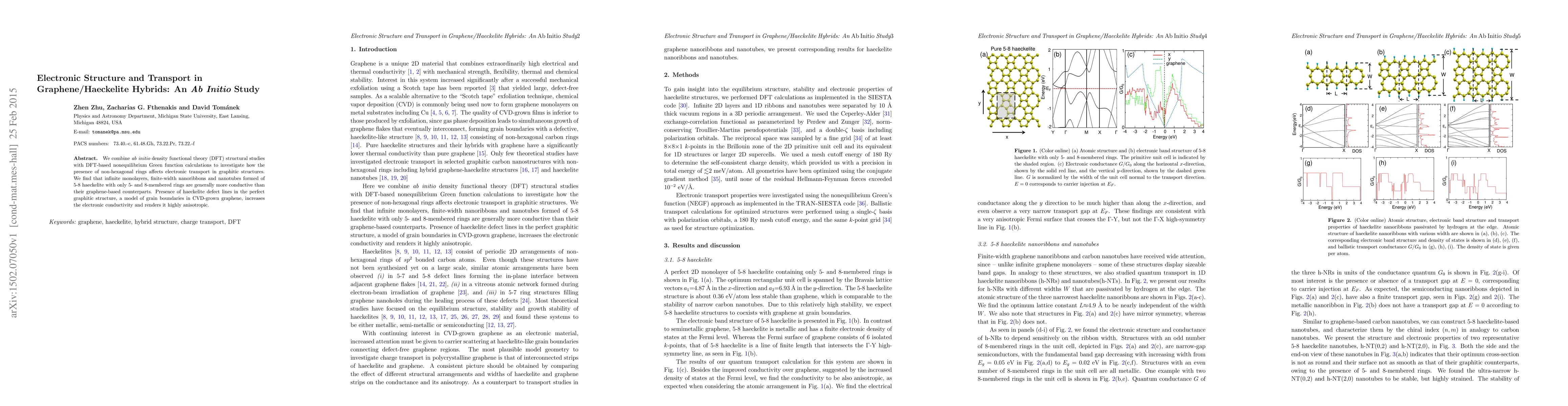 This study uses {\em ab initio} DFT to explore electronic transport in graphene/haeckelite hybrids, revealing that structures with non-hexagonal rings (5-8 haeckelite) are more conductive than pure graphene, especially when haeckelite defects are present, leading to anisotropic conductivity.