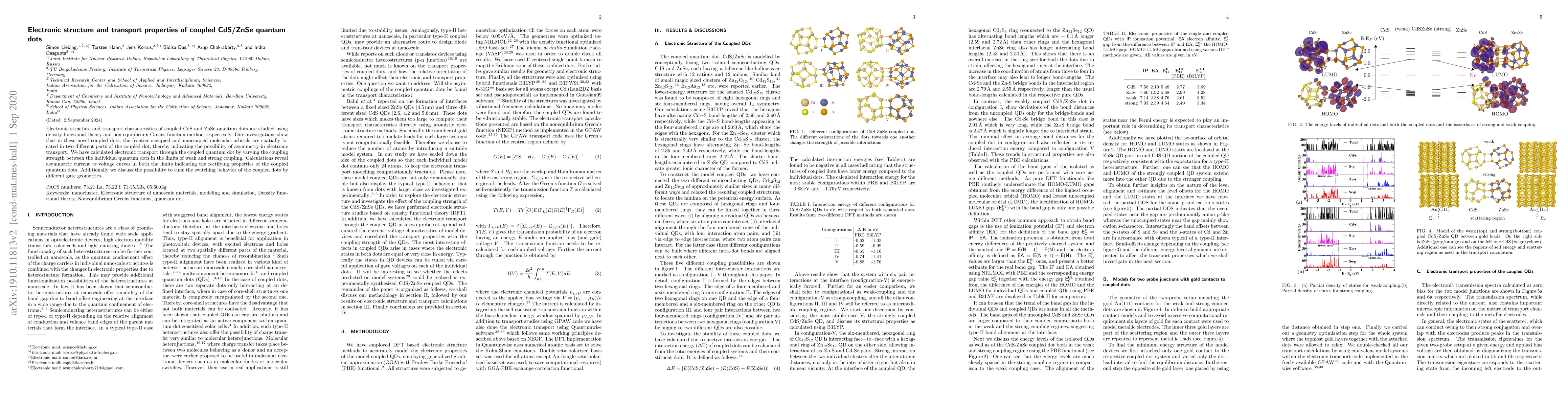 This paper investigates the electronic structure and transport properties of coupled CdS/ZnSe quantum dots using density functional theory and non-equilibrium Green’s function method, revealing asymmetric transport and rectifying behavior influenced by varying coupling strength and gate geometries.