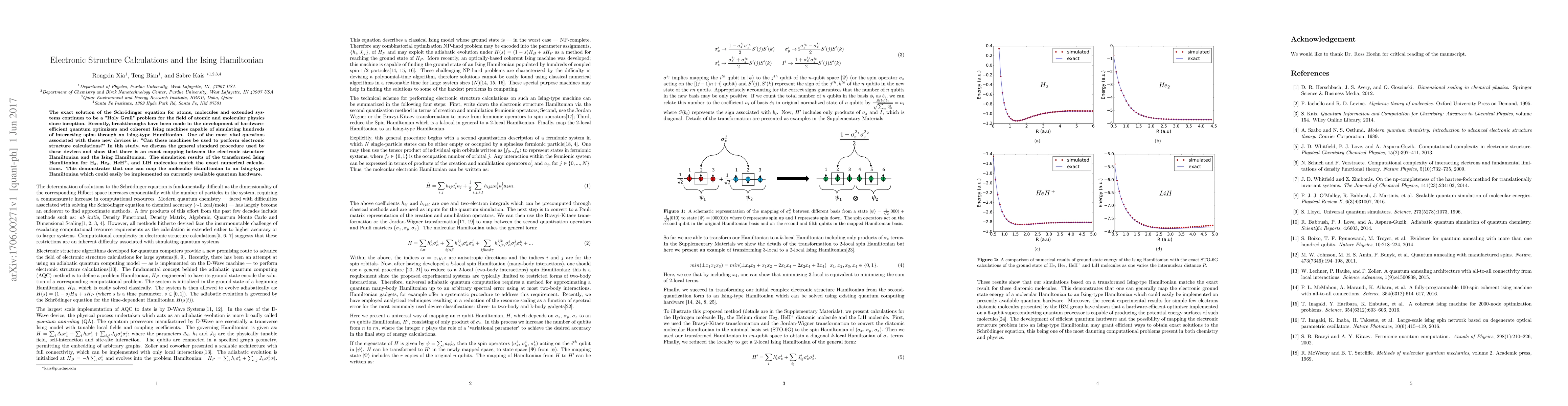 The exact solution of the Schrodinger equation for atoms, molecules and extended systems continues to be a "Holy Grail" problem for the field of atomic and molecular physics since inception. Recently, breakthroughs have been made in the development of hardware- efficient quantum optimizers and coherent Ising machines capable of simulating hundreds of interacting spins through an Ising-type Hamiltonian. One of the most vital questions associated with these new devices is: "Can these machines be used to perform electronic structure calculations?" In this study, we discuss the general standard procedure used by these devices and show that there is an exact mapping between the electronic structure Hamiltonian and the Ising Hamiltonian. The simulation results of the transformed Ising Hamiltonian for H2, He2, HeH+, and LiH molecules match the exact numerical calculations. This demonstrates that one can map the molecular Hamiltonian to an Ising-type Hamiltonian which could easily be implemented on currently available quantum hardware.