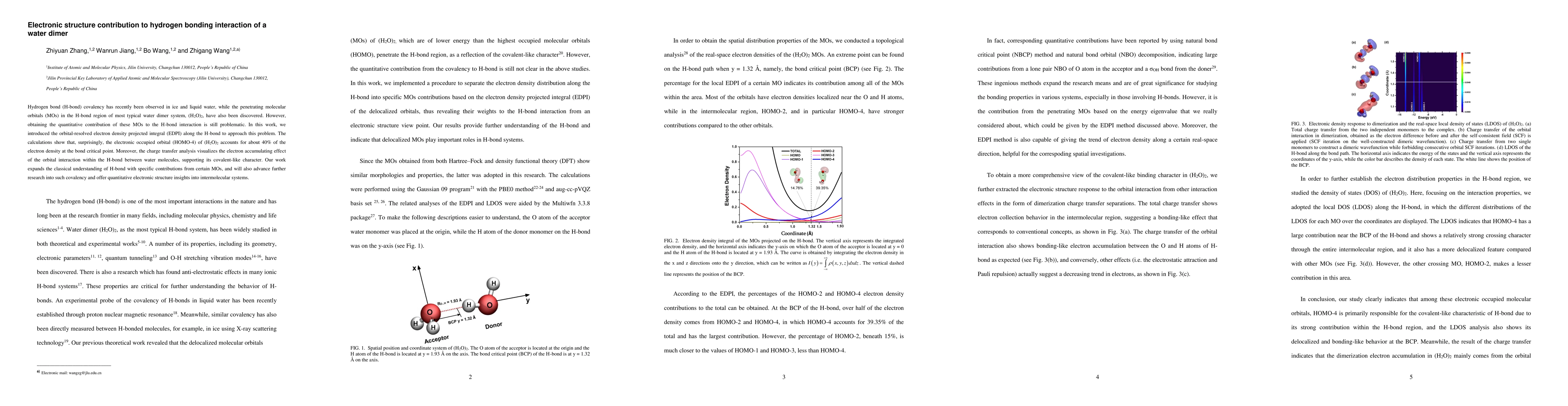 This research expands the classical understanding of hydrogen bonding by attributing specific contributions from certain molecular orbitals, offering quantitative electronic structure insights into intermolecular systems and advancing further research into covalency in hydrogen bonds.