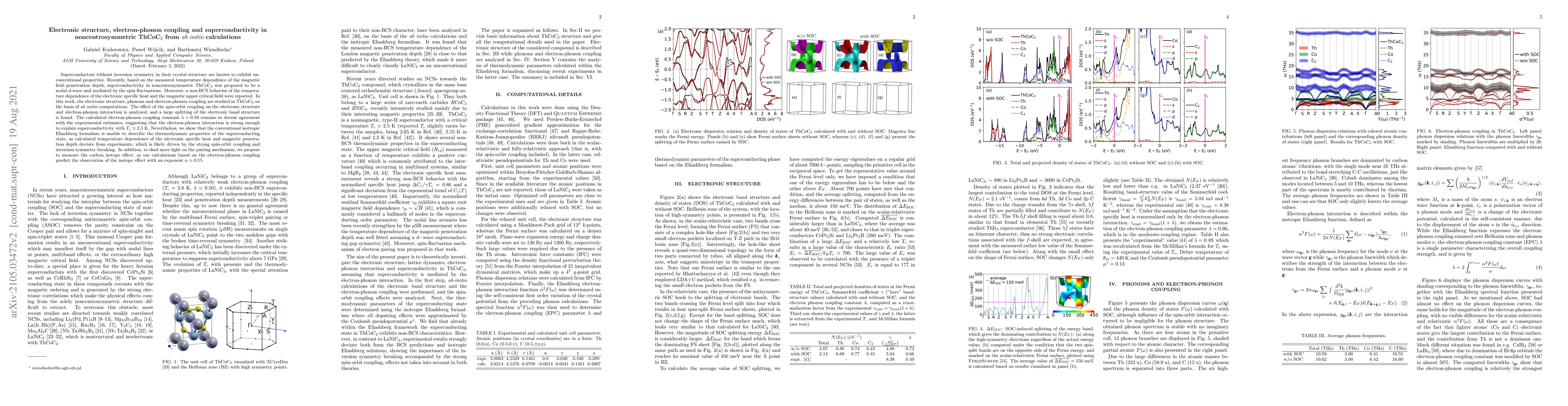This study investigates the electronic structure, phonons, and electron-phonon coupling in noncentrosymmetric ThCoC₂ using ab initio calculations. It finds a strong electron-phonon coupling supporting superconductivity at ~2.5 K, but conventional Eliashberg theory fails to match experimental thermodynamic properties, likely due to strong spin-orbit coupling.