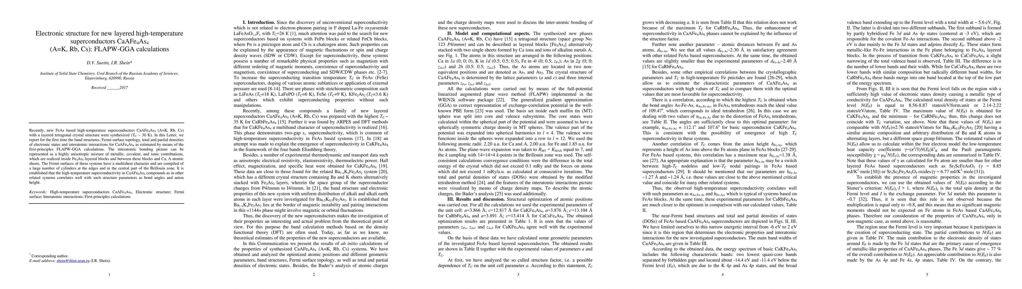 This paper reports the electronic structure of newly synthesized CaAFe4As4 (A=K, Rb, Cs) high-temperature superconductors using FLAPW-GGA calculations, revealing a complex interatomic bonding and multisheet Fermi surface topology, which correlates with the observed superconductivity.