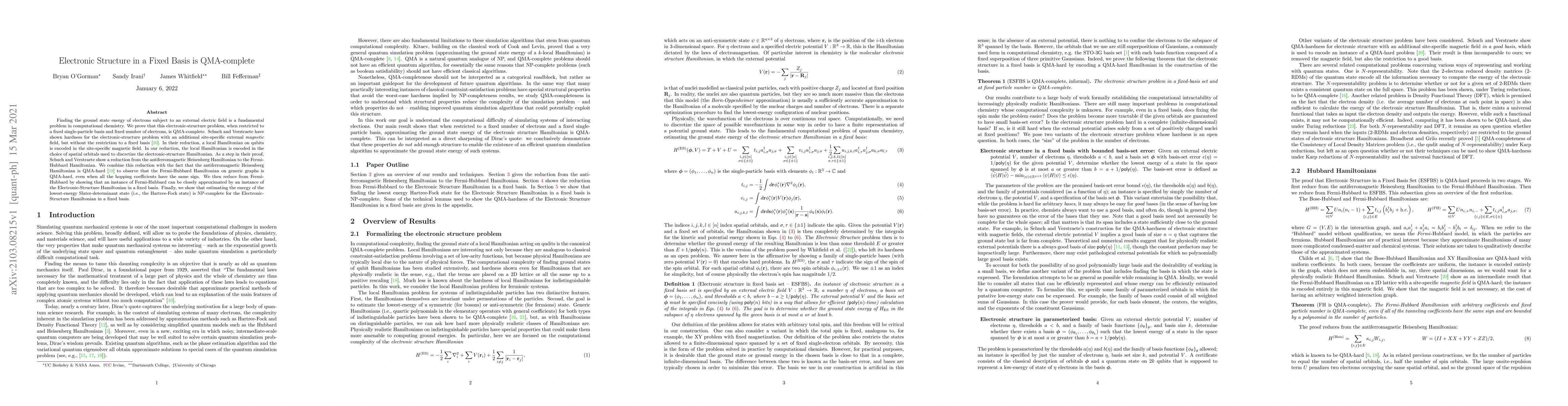 This paper proves that determining the ground state energy of electrons under an external electric field, constrained to a fixed single-particle basis and fixed number of electrons, is QMA-complete. It establishes a reduction from the Fermi-Hubbard Hamiltonian to the electronic-structure problem, demonstrating its computational complexity.
