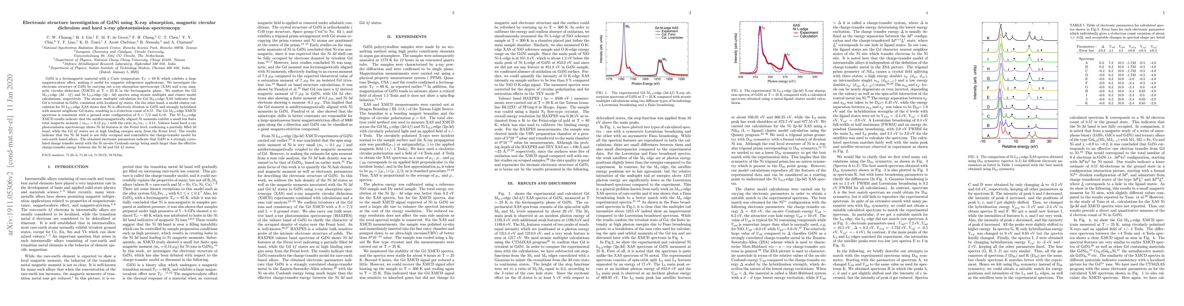 This study investigates the electronic structure of ferrimagnetic GdNi using X-ray absorption, magnetic circular dichroism, and hard x-ray photoemission spectroscopy. Results show Gd is trivalent, Ni is divalent and strongly hybridized with Gd, and the Ni 3d band is partially filled, indicating GdNi is a strongly correlated charge transfer metal.