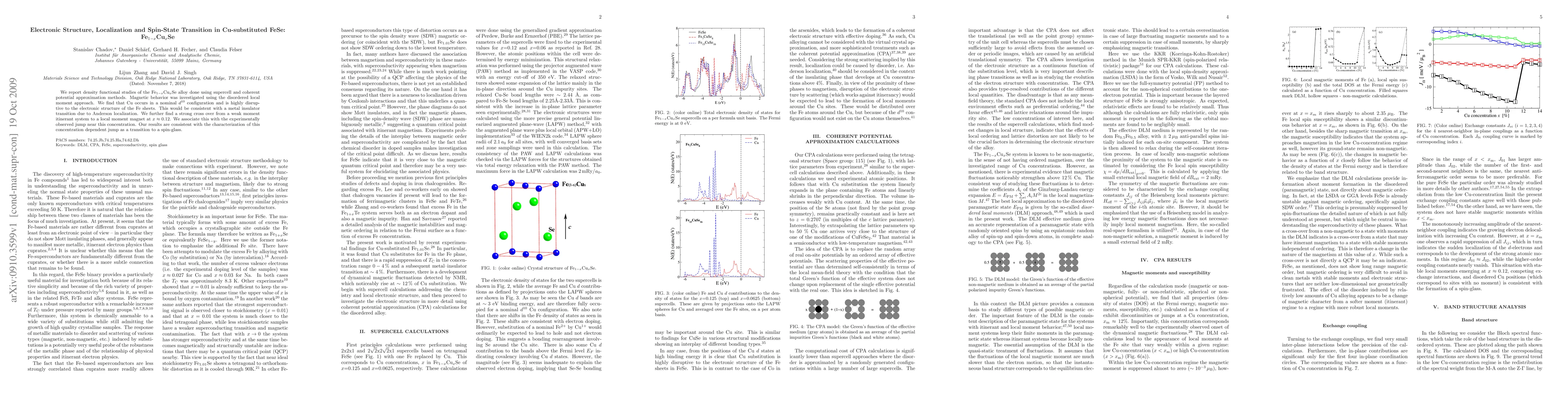 This study investigates the electronic structure and magnetic properties of Cu-substituted FeSe using density functional theory. Cu substitution disrupts FeSe's electronic structure leading to a metal-insulator transition, and a spin-state transition occurs at Cu concentration $x \approx 0.12$, associated with a transition to a spin-glass state.
