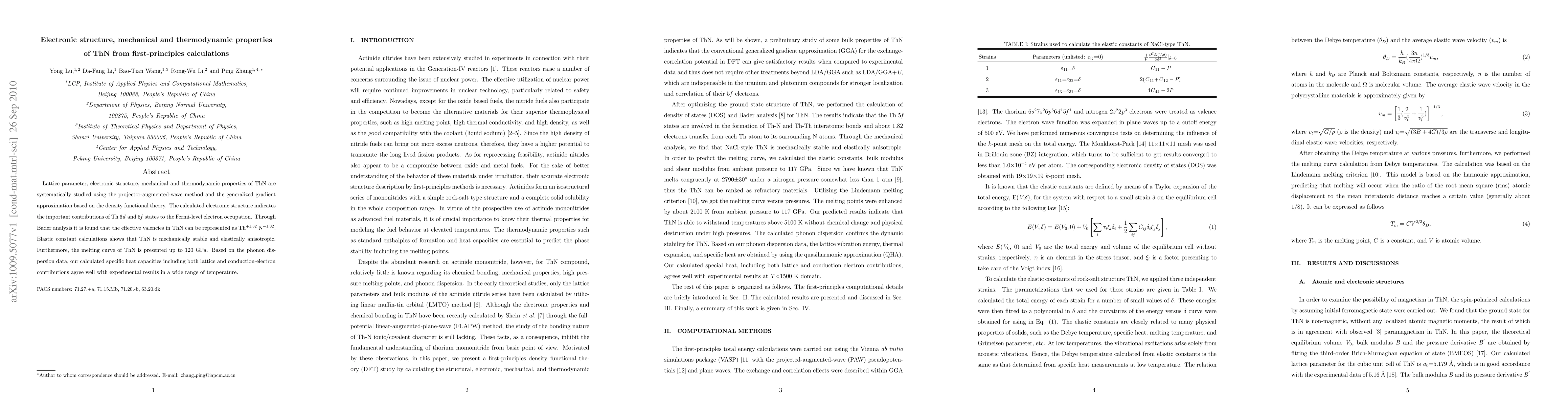 Researchers studied ThN using first-principles calculations, finding that it has unique electronic structure and mechanical properties, with a stable crystal structure and specific heat capacities that match experimental results.