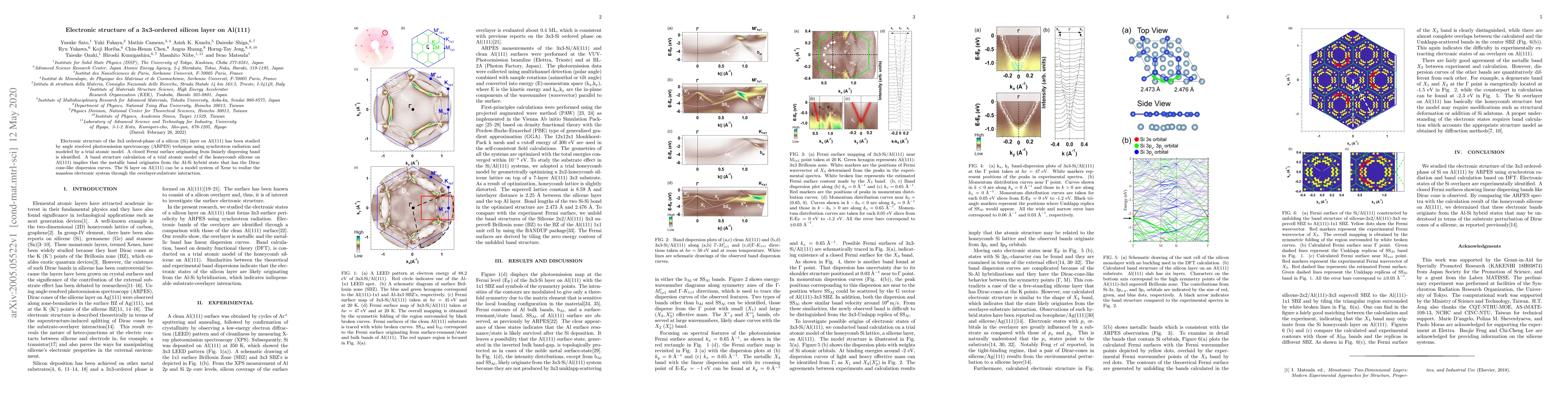Researchers studied the electronic structure of a silicon layer on aluminum using ARPES and found a closed Fermi surface with Dirac cone-like dispersion curves, suggesting a massless electronic system.