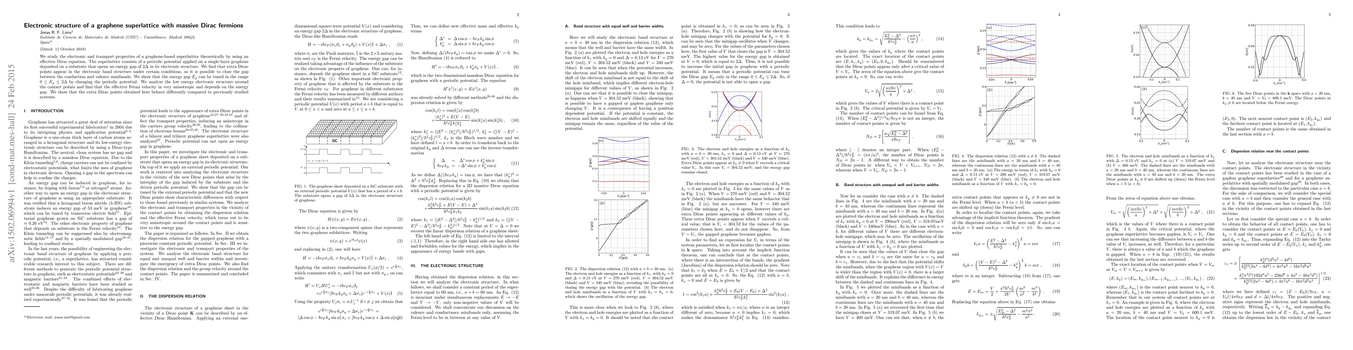 We study the electronic and transport properties of a graphene-based superlattice theoretically by using an effective Dirac equation. The superlattice consists of a periodic potential applied on a single-layer graphene deposited on a substrate that opens an energy gap of $2\Delta$ in its electronic structure. We find that extra Dirac points appear in the electronic band structure under certain conditions, so it is possible to close the gap between the conduction and valence minibands. We show that the energy gap $E_g$ can be tuned in the range $0\leq E_g \leq 2\Delta$ by changing the periodic potential. We analyze the low energy electronic structure around the contact points and find that the effective Fermi velocity in very anisotropic and depends on the energy gap. We show that the extra Dirac points obtained here behave differently compared to previously studied systems.
