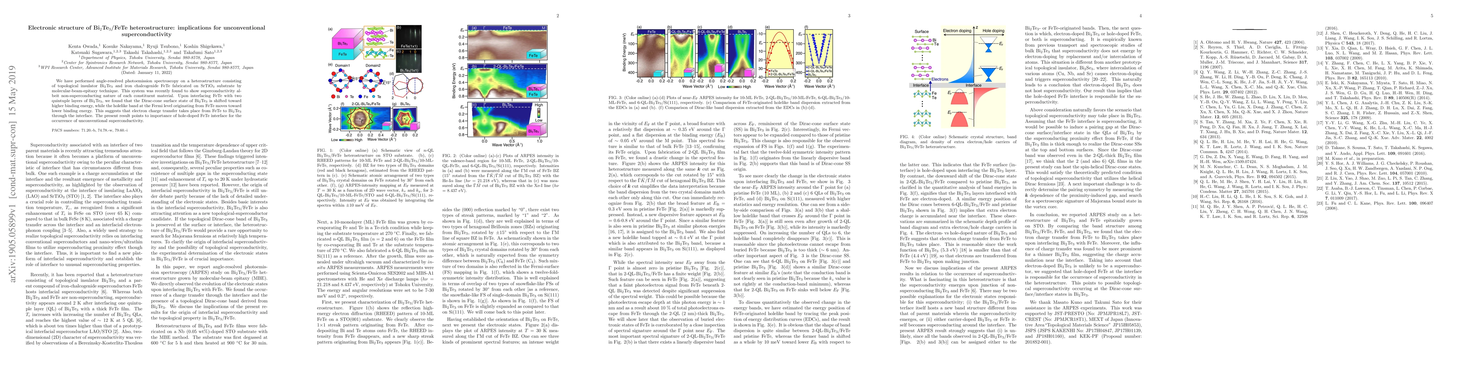 This study uses angle-resolved photoemission spectroscopy to investigate the electronic structure of a Bi2Te3/FeTe heterostructure, revealing that the interface induces electron charge transfer from FeTe to Bi2Te3, which is crucial for the emergence of unconventional superconductivity in the system despite the non-superconducting nature of the individual materials.