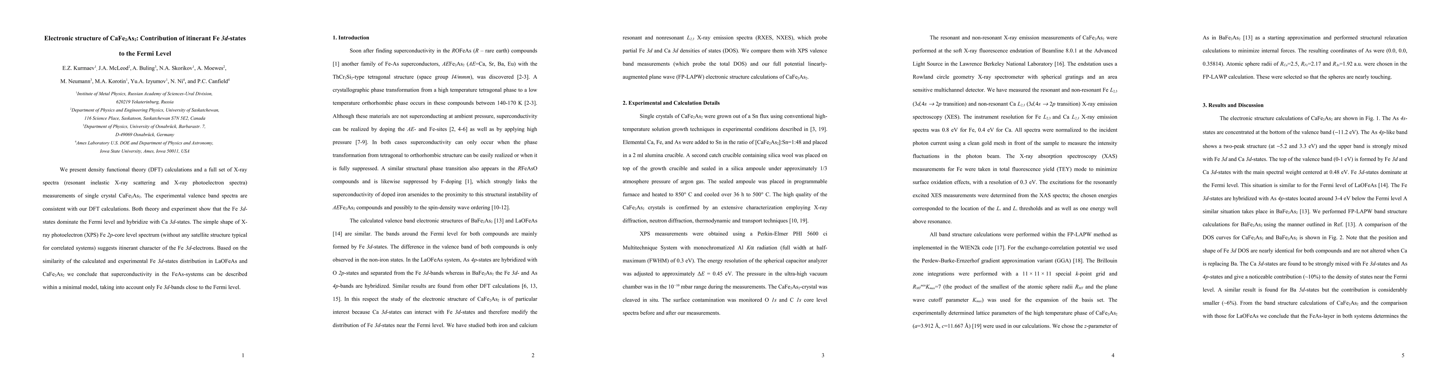 The paper presents a detailed comparison of DFT calculations and experimental X-ray spectra, demonstrating the dominance of Fe 3d-states near the Fermi level in CaFe2As2.