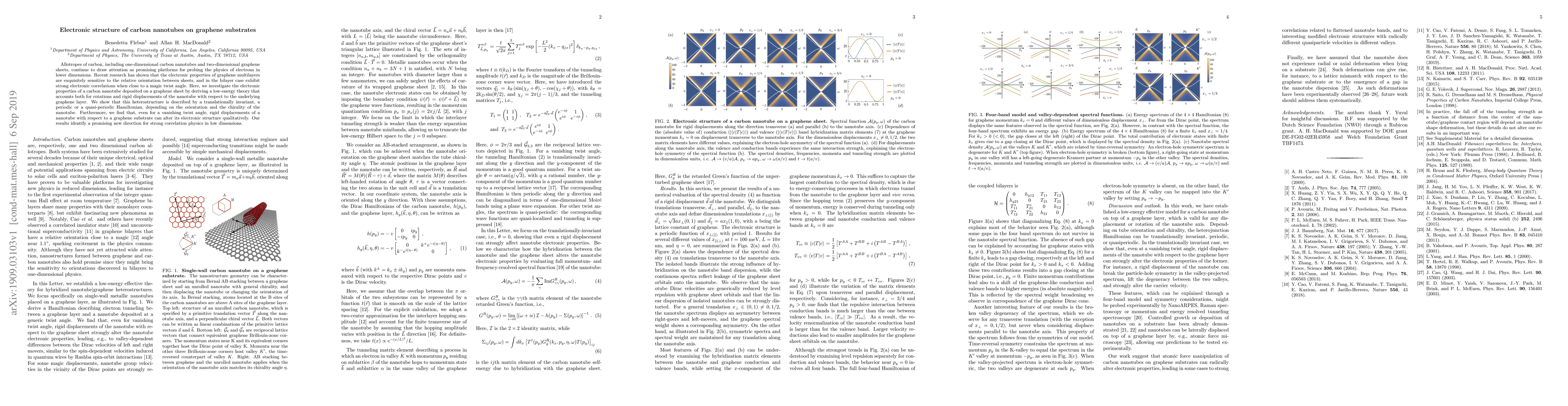 This research investigates the electronic properties of carbon nanotubes on graphene substrates, revealing how the nanotube's orientation and chirality affect its electronic structure, and how rigid displacements can qualitatively alter this structure, opening new avenues for studying strong correlation physics in low-dimensional systems.