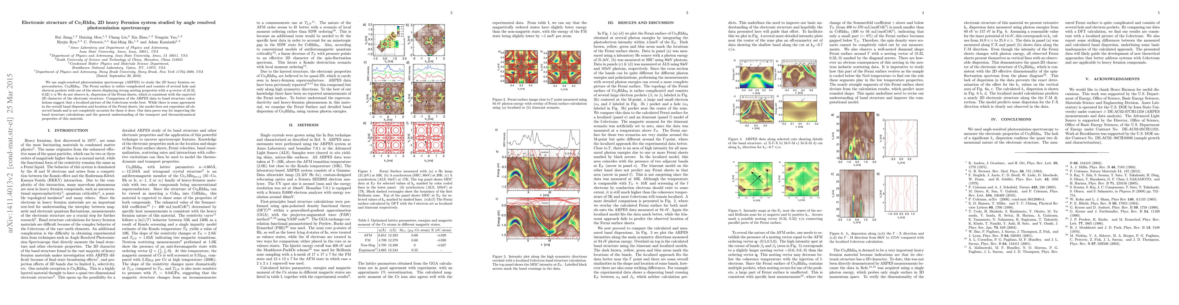 Summary: Angle-resolved photoemission spectroscopy reveals a complex Fermi surface with multiple hole and electron pockets in the 2D heavy fermion superconductor Ce2RhIn8, with no kz dispersion, indicating its 2D electronic structure. The localized f-electron picture aligns with band structure calculations, aiding the understanding of its transport and thermodynamical properties.