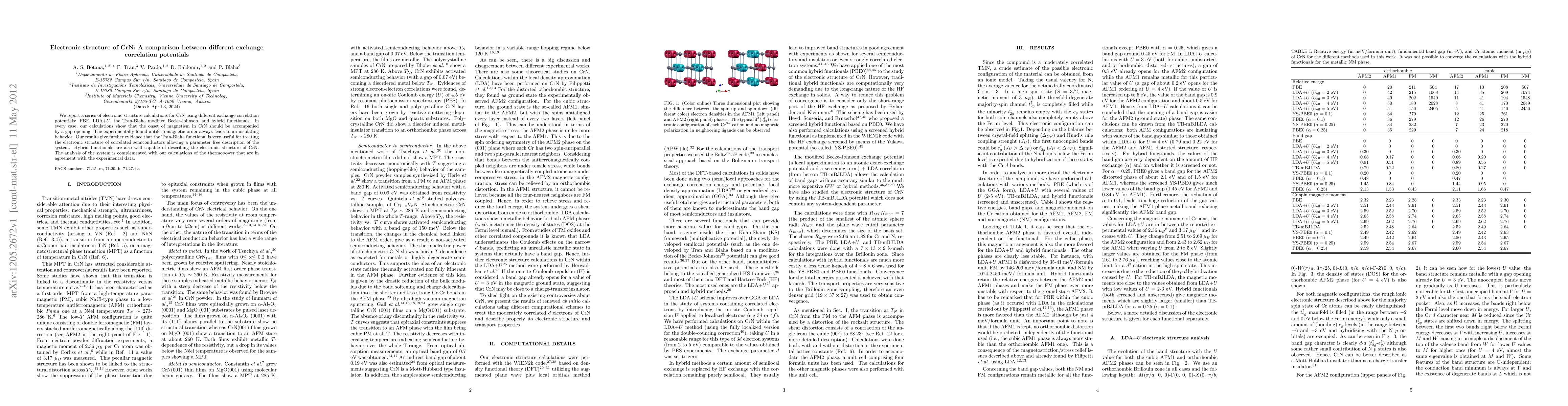 We report a series of electronic structure calculations for CrN using different exchange correlation potentials: PBE, LDA+$U$, the Tran-Blaha modified Becke-Johnson, and hybrid functionals. In every case, our calculations show that the onset of magnetism in CrN should be accompanied by a gap opening. The experimentally found antiferromagnetic order always leads to an insulating behavior. Our results give further evidence that the Tran-Blaha functional is very useful for treating the electronic structure of correlated semiconductors allowing a parameter free description of the system. Hybrid functionals are also well capable of describing the electronic structure of CrN. The analysis of the system is complemented with our calculations of the thermopower that are in agreement with the experimental data.
