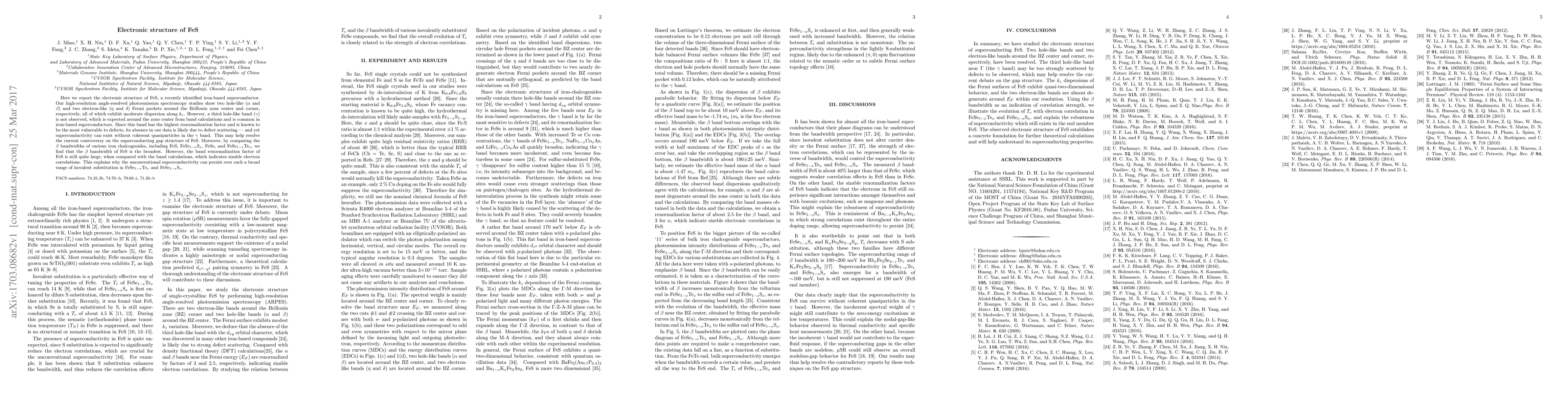 This paper reports the electronic structure of FeS using high-resolution angle-resolved photoemission spectroscopy, revealing four Fermi pockets but noting the absence of a third hole-like band ($\gamma$). The study suggests that superconductivity in FeS can exist despite defect scattering, and it finds the broadest $\beta$ bandwidth in FeS compared to other iron chalcogenides, indicating significant electron correlations.