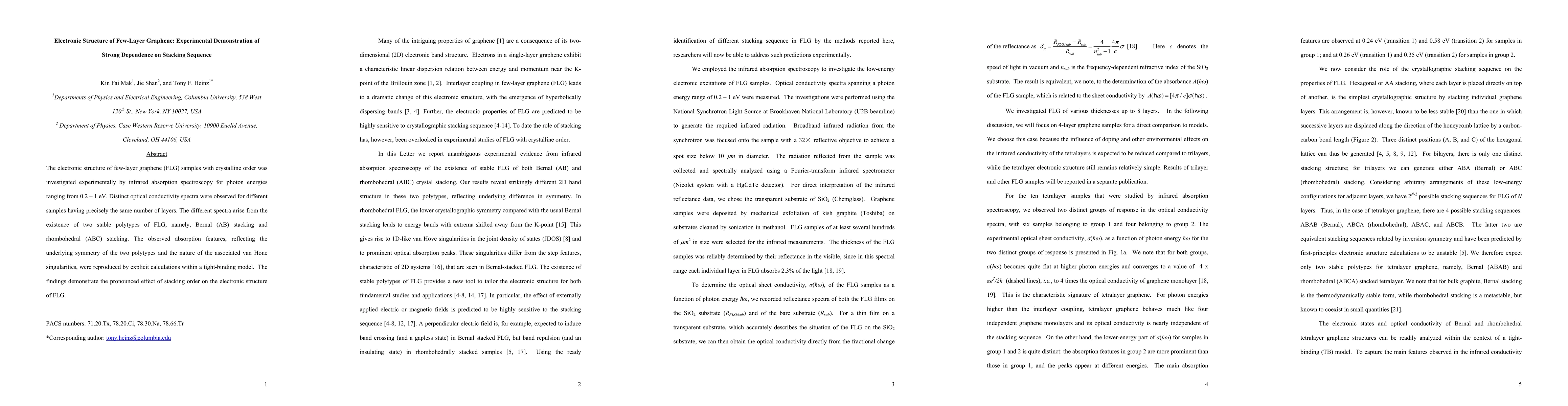 This study experimentally investigates the electronic structure of few-layer graphene using infrared absorption spectroscopy, revealing distinct optical conductivity spectra for different stacking sequences. The pronounced effect of stacking order, specifically between Bernal and rhombohedral polytypes, is demonstrated through tight-binding model calculations.