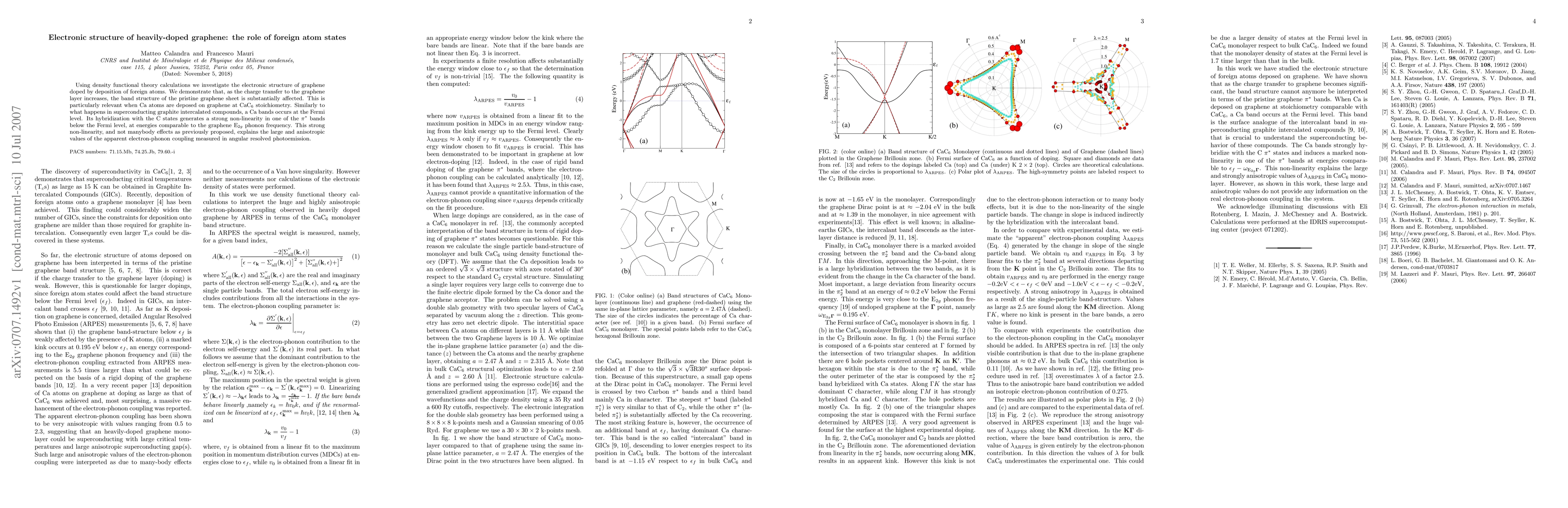 Researchers used density functional theory to study the effects of doping graphene with foreign atoms, finding that it alters the band structure and creates a new 'Ca' band at the Fermi level, leading to strong non-linearity in one of the $eta^*$ bands.