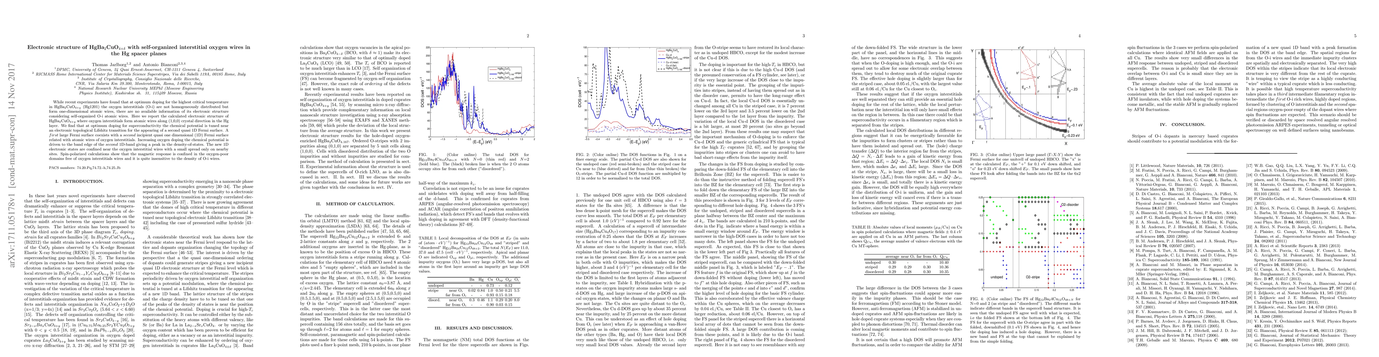 While recent experiments have found that at optimum doping for the highest critical temperature in HgBa$_2$CuO$_{4+y}$ (Hg1201) the oxygen interstitials (O-i) are not homogeneously distributed but form one-dimensional atomic wires, there are no available information of its electronic structure considering self-organized O-i atomic wires. Here we report the calculated electronic structure of HgBa$_2$CuO$_{4+y}$ where oxygen interstitials form atomic wires along (1,0,0) crystal direction in the Hg layer. We find that at optimum doping for superconductivity the chemical potential is tuned near an electronic topological Lifshitz transition for the appearing of a second quasi 1D Fermi surface. A $first$ large Fermi surface coexists with a $second$ incipient quasi one dimensional (1D) Fermi surface related with atomic wires of oxygen interstitials. Increasing oxygen doping the chemical potential is driven to the band edge of the $second$ 1D-band giving a peak in the density-of-states. The new 1D electronic states are confined near the oxygen interstitial wires with a small spread only on nearby sites. Spin-polarized calculations show that the magnetic response is confined in the oxygen-poor domains free of oxygen interstitials wires and it is quite insensitive to the density of O-i wires.