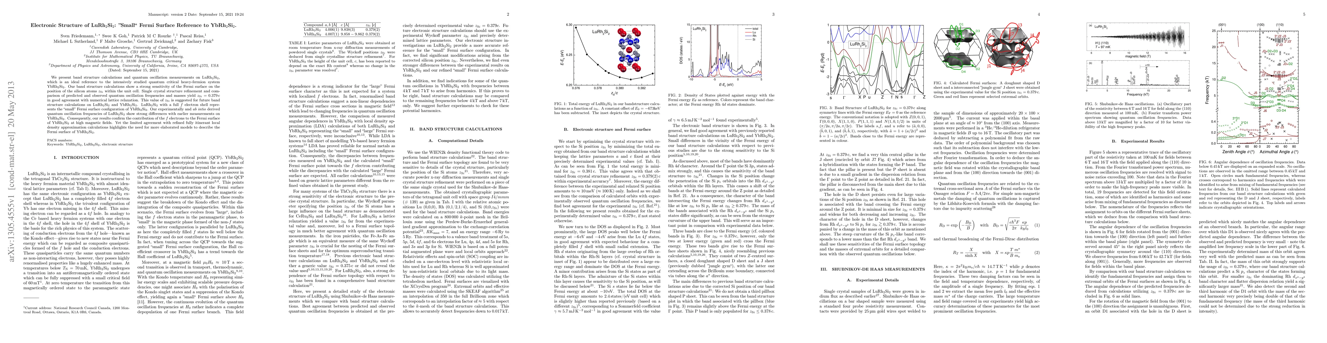 This study investigates LuRh2Si2, providing a "small" Fermi surface reference to the quantum critical heavy-fermion system YbRh2Si2. The research reveals a strong Fermi surface sensitivity to silicon atom positioning, confirming zSi = 0.379c through quantum oscillation measurements and band structure calculations.