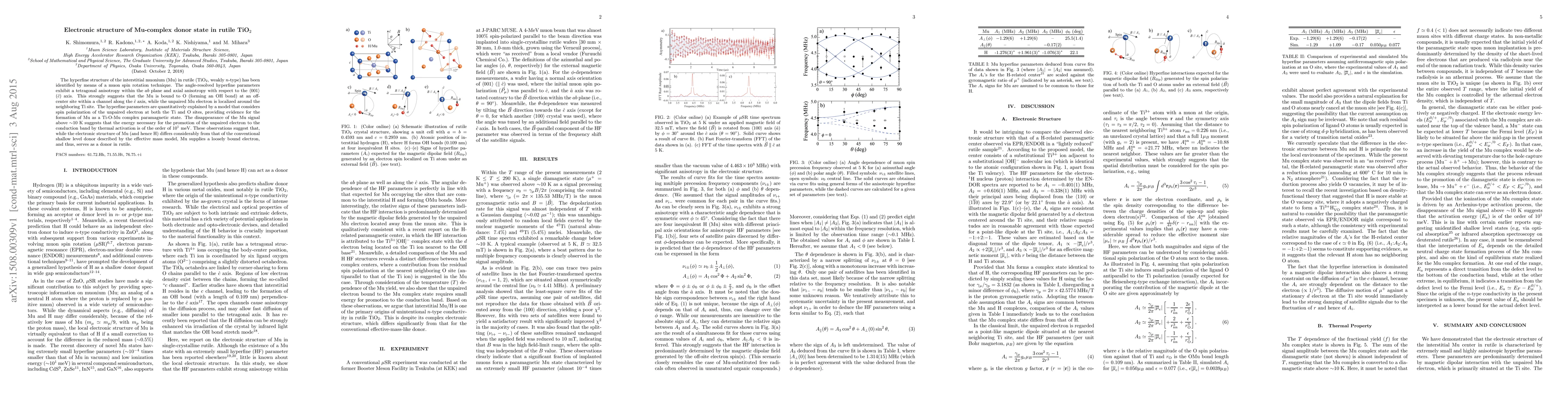 Researchers used muon spin rotation to study Mu-complex donor state in rutile TiO2, finding that it forms a Ti-O-Mu complex with an off-center O site bound to the Mu atom, providing evidence for its paramagnetic behavior.