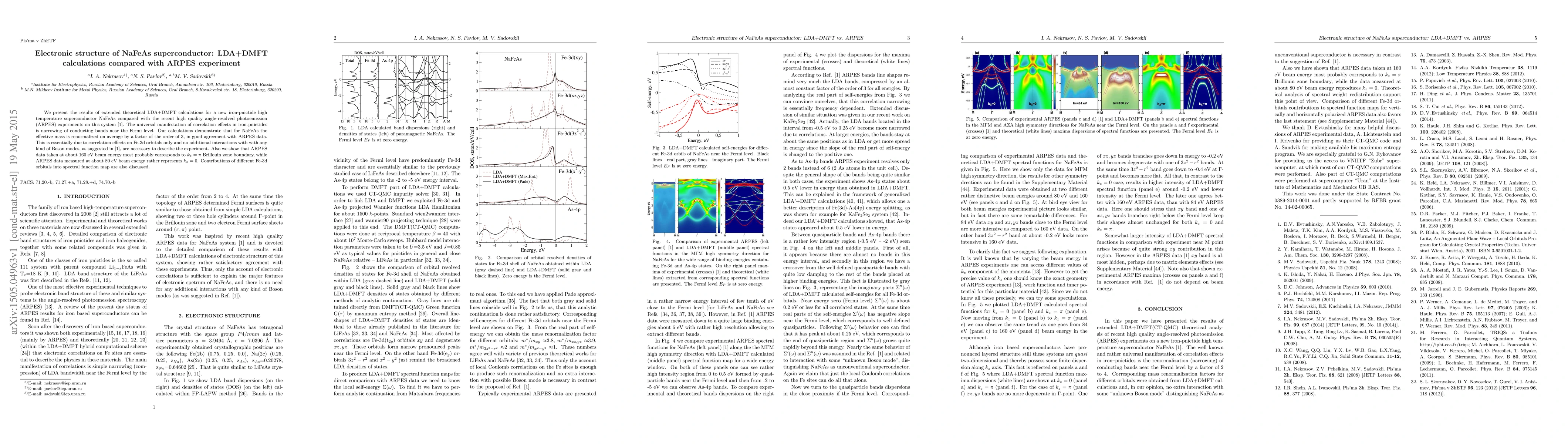 This study combines LDA+DMFT calculations with ARPES experiments to analyze the electronic structure of NaFeAs superconductor, revealing significant correlation effects that renormalize the effective mass by a factor of 3, aligning well with experimental data. The research shows that ARPES data at different energies correspond to different Brillouin zone boundaries, highlighting the role of Fe-3d orbitals.