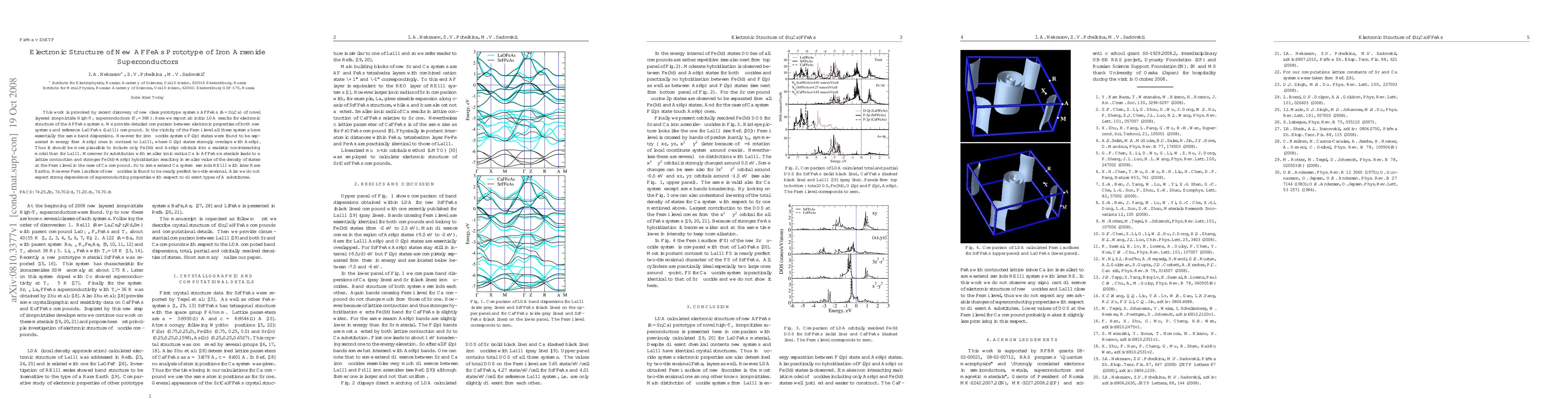 Researchers studied the electronic structure of new iron arsenide superconductors (AFFeAs) using ab initio LDA calculations and found that they share similar band dispersions with a reference compound but have distinct features, including stronger Fe-As hybridization and nearly perfect 2D Fermi surfaces.