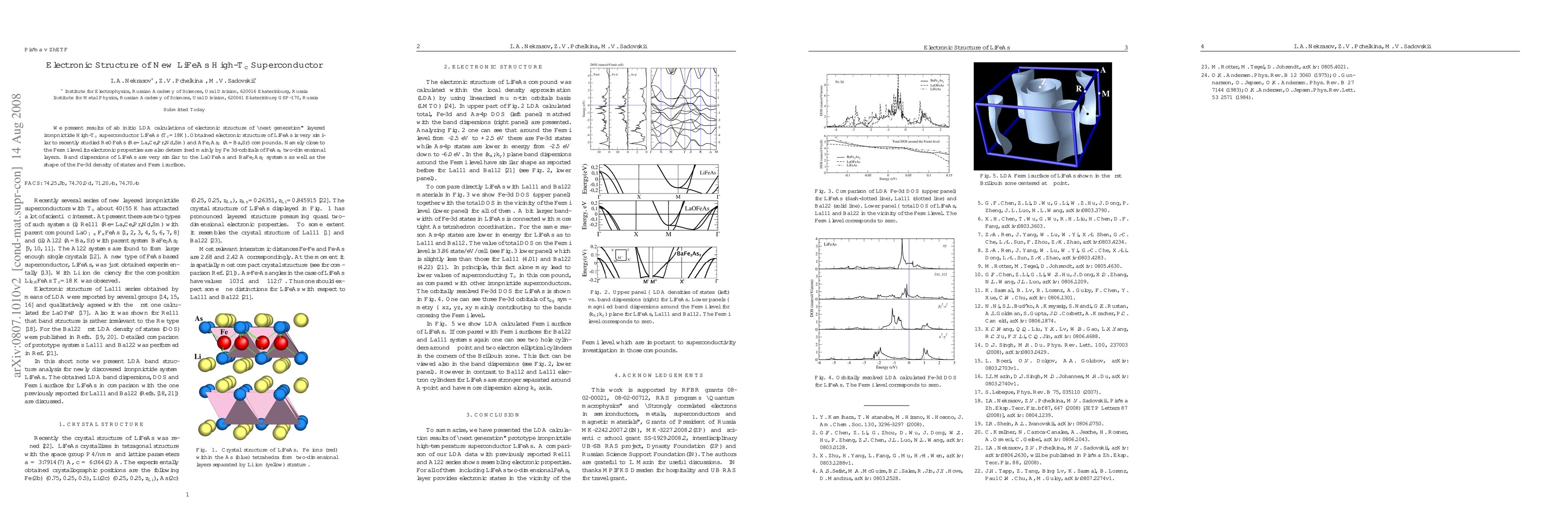 This study reports ab initio LDA calculations revealing that the electronic structure of the high-Tc superconductor LiFeAs is similar to other iron-based superconductors, with Fe 3d-orbitals in FeAs4 layers playing a key role near the Fermi level. The band dispersions and Fe-3d density of states closely resemble those in LaOFeAs and BaFe2As2.