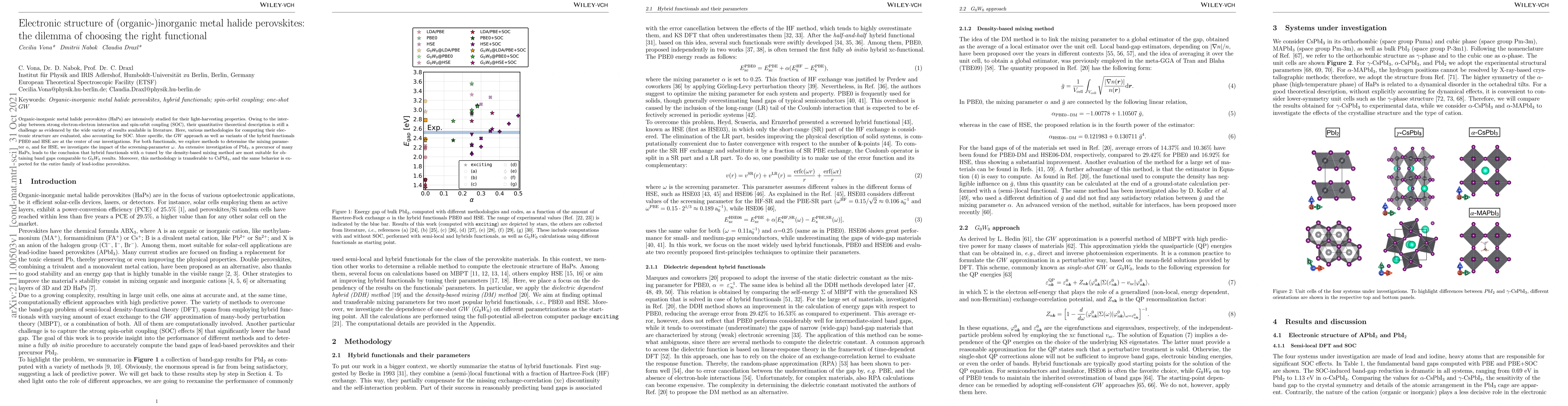 Researchers evaluate various methods for computing the electronic structure of organic-inorganic metal halide perovskites, finding that hybrid functionals with a tuned mixing parameter are most suitable for accurately predicting band gaps.