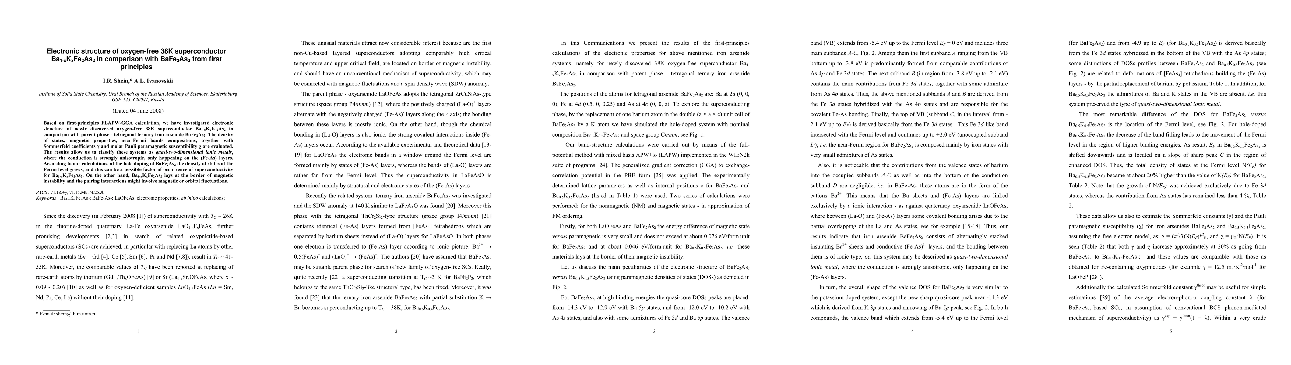 Based on first-principles FLAPW-GGA calculation, we have investigated electronic structure of newly discovered oxygen-free 38K superconductor Ba1-xKxFe2As2 in comparison with parent phase - tetragonal ternary iron arsenide BaFe2As2. The density of states, magnetic properties, near-Fermi bands compositions, together with Sommerfeld coefficients and molar Pauli paramagnetic susceptibility are evaluated. The results allow us to classify these systems as quasi-two-dimensional ionic metals, where the conduction is strongly anisotropic, only happening on the (Fe-As) layers. According to our calculations, at the hole doping of BaFe2As2 the density of states at the Fermi level grows, and this can be a possible factor of occurrence of superconductivity for Ba1-xKxFe2As2. On the other hand, Ba1-xKxFe2As2 lays at the border of magnetic instability and the pairing interactions might involve magnetic or orbital fluctuations.