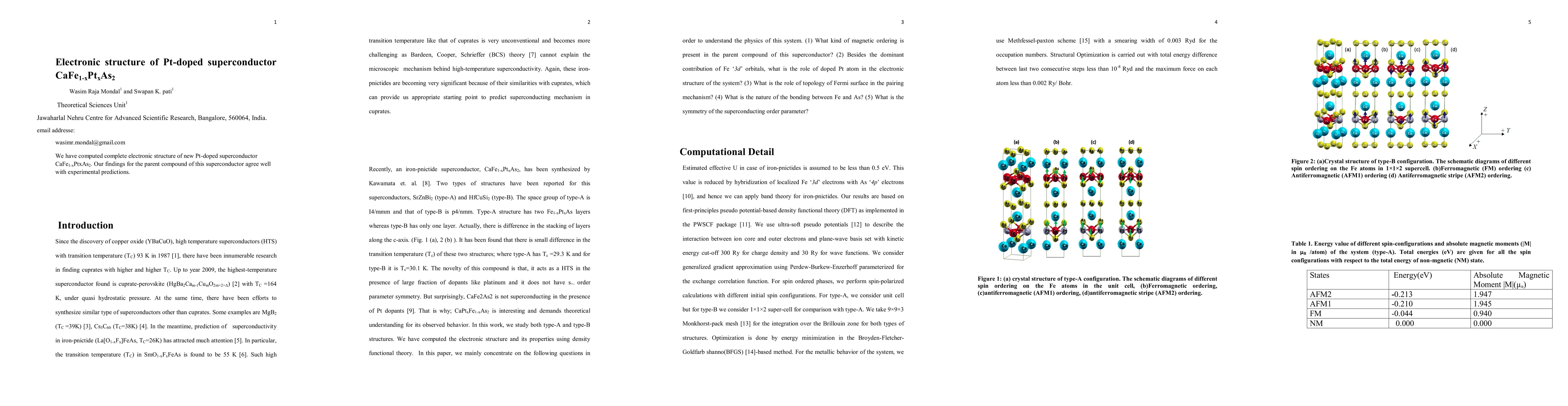 Summary: This study computes the electronic structure of Pt-doped superconductor CaFe1-xPtxAs2, revealing that its parent compound aligns well with experimental data, providing insights into its superconducting properties.