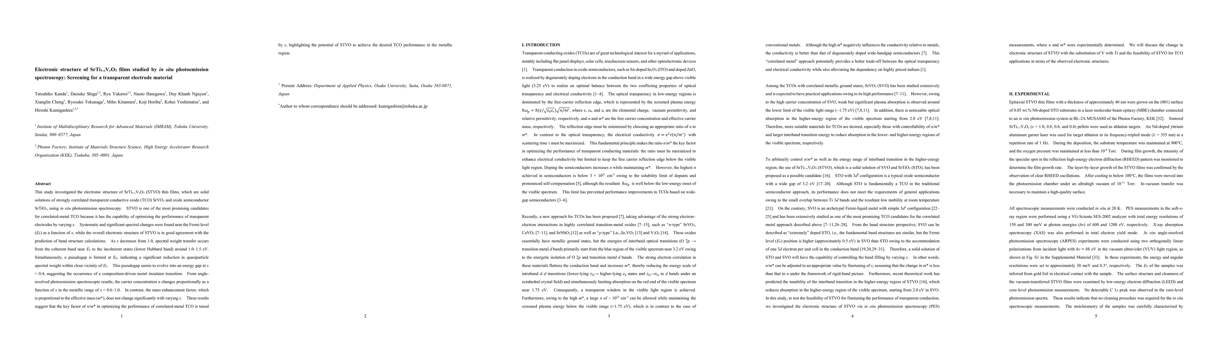 This study investigated the electronic structure of SrTi$_{1-x}$V$_x$O$_3$ (STVO) thin films, which are solid solutions of strongly correlated transparent conductive oxide (TCO) SrVO$_3$ and oxide semiconductor SrTiO$_3$, using ${in situ}$ photoemission spectroscopy. STVO is one of the most promising candidates for correlated-metal TCO because it has the capability of optimizing the performance of transparent electrodes by varying ${x}$. Systematic and significant spectral changes were found near the Fermi level (${E_{\rm F}}$) as a function of ${x}$, while the overall electronic structure of STVO is in good agreement with the prediction of band structure calculations. As ${x}$ decreases from 1.0, spectral weight transfer occurs from the coherent band near ${E_{\rm F}}$ to the incoherent states (lower Hubbard band) around 1.0-1.5 eV. Simultaneously, a pseudogap is formed at ${E_{\rm F}}$, indicating a significant reduction in quasiparticle spectral weight within close vicinity of ${E_{\rm F}}$. This pseudogap seems to evolve into an energy gap at ${x}$ = 0.4, suggesting the occurrence of a composition-driven metal-insulator transition. From angle-resolved photoemission spectroscopic results, the carrier concentration ${n}$ changes proportionally as a function of ${x}$ in the metallic range of ${x}$ = 0.6-1.0. In contrast, the mass enhancement factor, which is proportional to the effective mass (${m^*}$), does not change significantly with varying ${x}$. These results suggest that the key factor of ${n/m^*}$ in optimizing the performance of correlated-metal TCO is tuned by ${x}$, highlighting the potential of STVO to achieve the desired TCO performance in the metallic region.