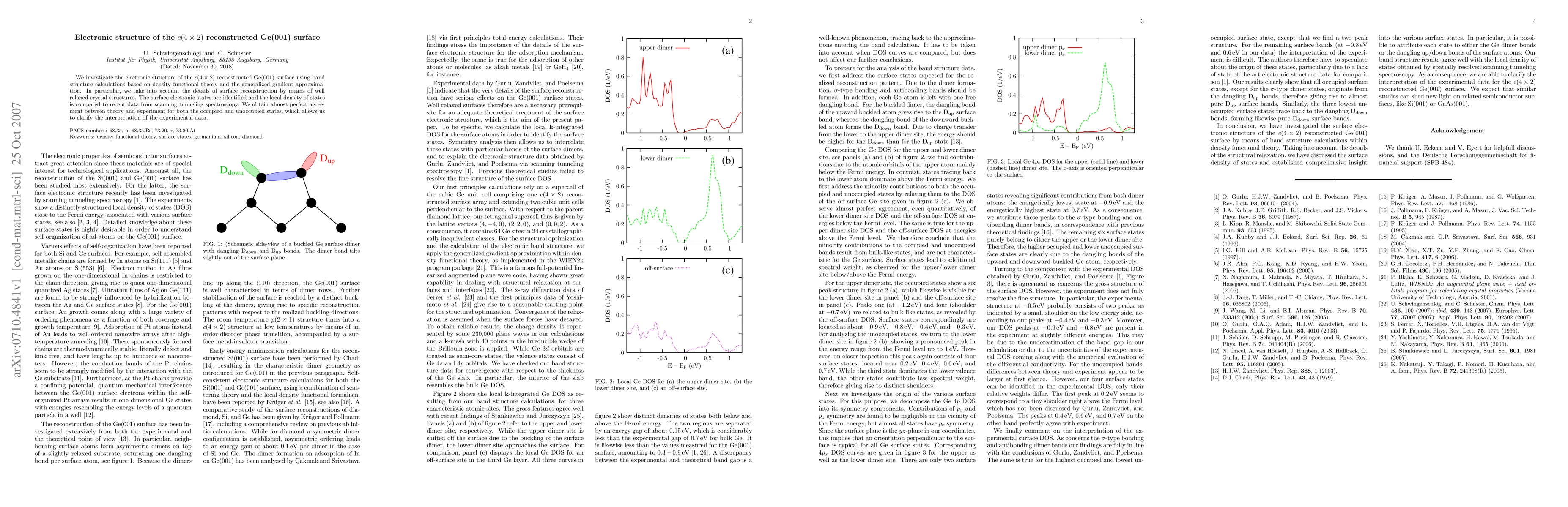 This paper investigates the electronic structure of the c(4 x 2) reconstructed Ge(001) surface using density functional theory calculations, achieving near-perfect agreement between theoretical predictions and experimental data from scanning tunneling spectroscopy. The study clarifies the interpretation of the surface electronic states.