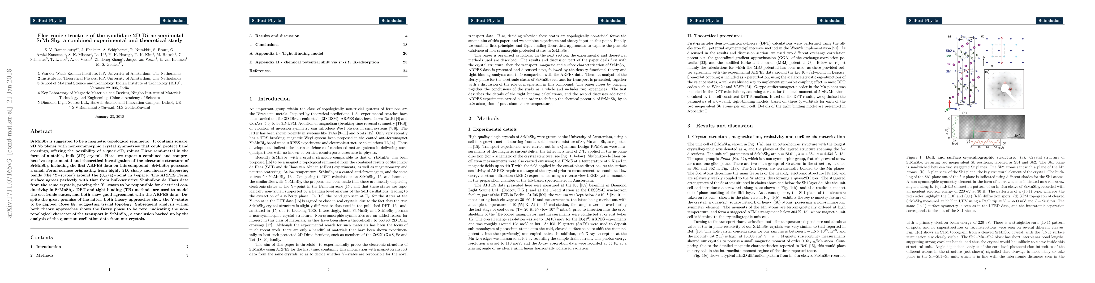 Researchers investigated SrMnSb2, a candidate 2D Dirac semimetal, using experimental and theoretical methods. They found that its electronic structure consists of sharp and linearly dispersing bands with no indication of topological protection.