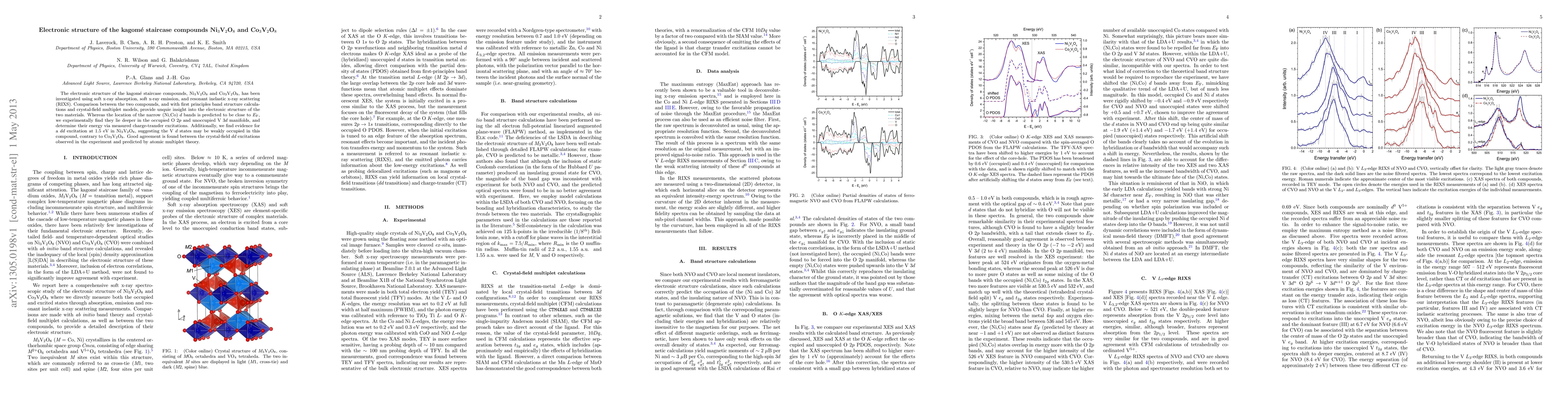 The electronic structure of the kagome staircase compounds, Ni3V2O8 and Co3V2O8, has been investigated using soft x-ray absorption, soft x-ray emission, and resonant inelastic x-ray scattering (RIXS). Comparison between the two compounds, and with first principles band structure calculations and crystal-field multiplet models, provide unique insight into the electronic structure of the two materials. Whereas the location of the narrow (Ni,Co) d bands is predicted to be close to EF, we experimentally find they lie deeper in the occupied O 2p and unoccupied V 3d manifolds, and determine their energy via measured charge-transfer excitations. Additionally, we find evidence for a dd excitation at 1.5 eV in Ni3V2O8, suggesting the V d states may be weakly occupied in this compound, contrary to Co3V2O8. Good agreement is found between the crystal-field dd excitations observed in the experiment and predicted by atomic multiplet theory.