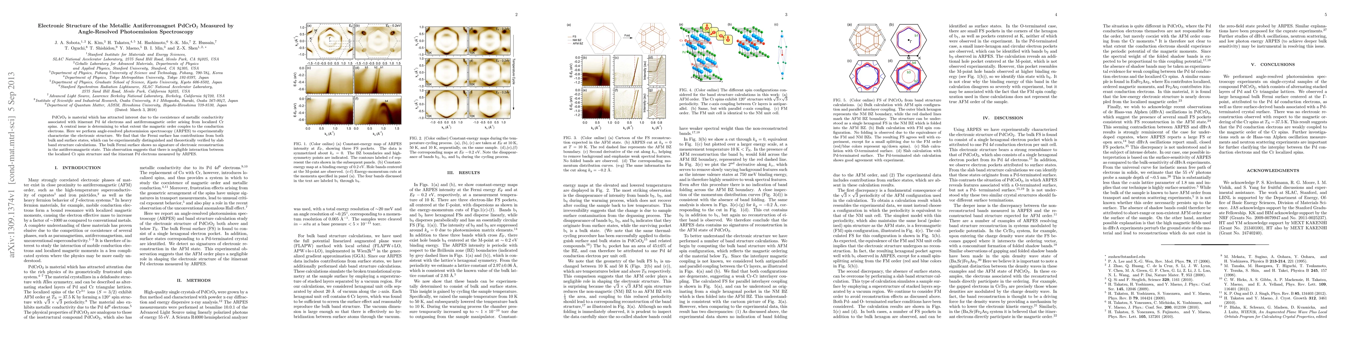 PdCrO$_2$ is material which has attracted interest due to the coexistence of metallic conductivity associated with itinerant Pd 4d electrons and antiferromagnetic order arising from localized Cr spins. A central issue is determining to what extent the magnetic order couples to the conduction electrons. Here we perform angle-resolved photoemission spectroscopy (ARPES) to experimentally characterize the electronic structure. We find that the Fermi surface has contributions from both bulk and surface states, which can be experimentally distinguished and theoretically verified by slab band structure calculations. The bulk Fermi surface shows no signature of electronic reconstruction in the antiferromagnetic state. This observation suggests that there is negligible interaction between the localized Cr spin structure and the itinerant Pd electrons measured by ARPES.
