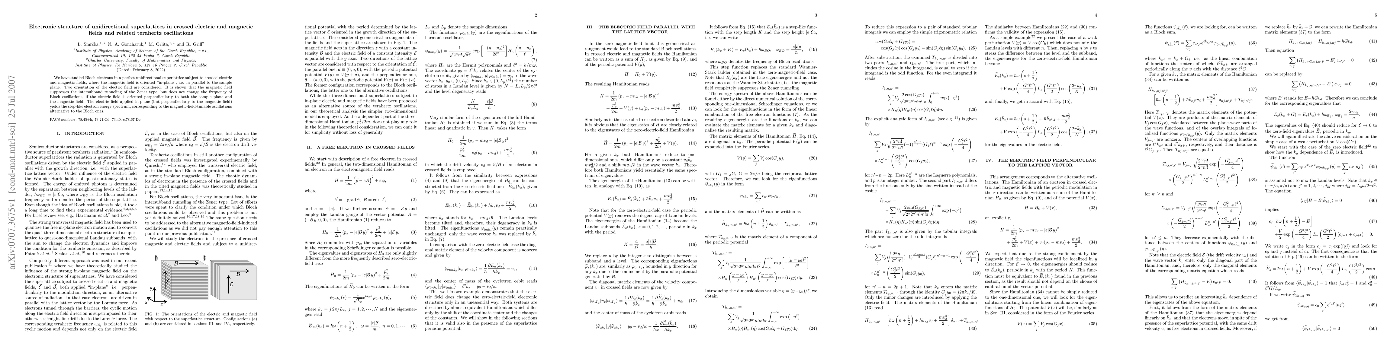 This research investigates the electronic structure of Bloch electrons in a unidirectional superlattice under crossed electric and magnetic fields, finding that the magnetic field suppresses Zener tunneling while maintaining Bloch oscillation frequency when the electric field is perpendicular to both the sample and magnetic planes. An in-plane electric field generates a step-like energy spectrum, leading to magnetic-field-tunable terahertz oscillations.