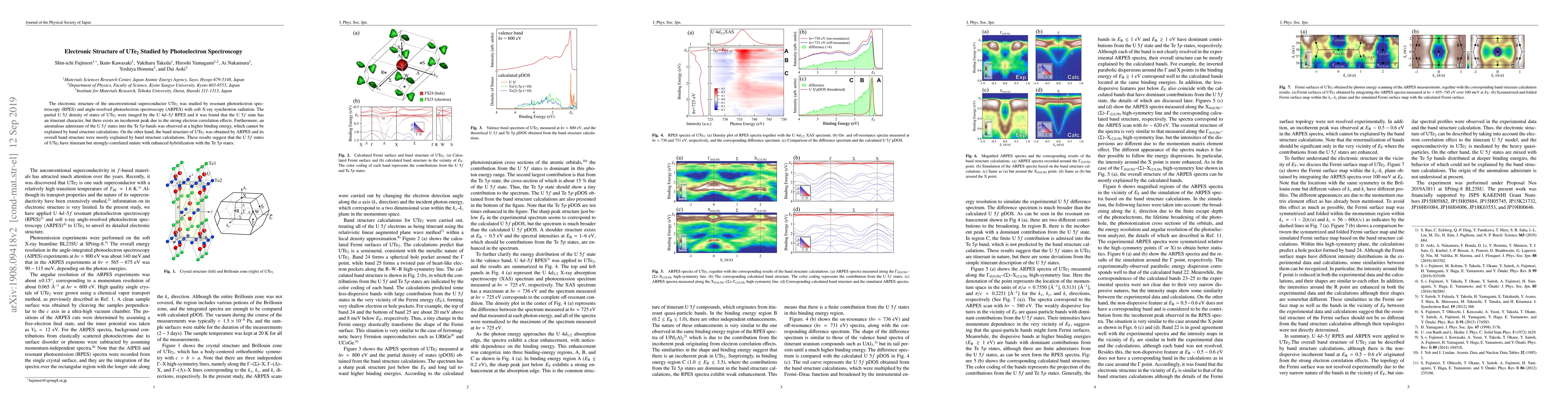 Researchers used photoelectron spectroscopy to study UTe2's electronic structure, finding that uranium 5f states have an itinerant but strongly-correlated nature with enhanced hybridization with Te 5p states.