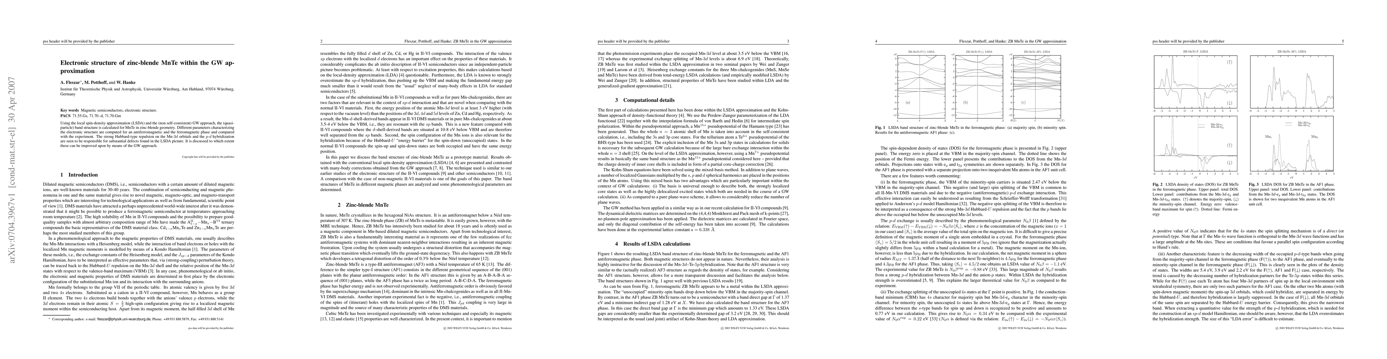 Using the local spin-density approximation (LSDA) and the (non self-consistent) GW approach, the (quasi-particle) band structure is calculated for MnTe in zinc-blende geometry. Different parameters characterizing the electronic structure are computed for an antiferromagnetic and the ferromagnetic phase and compared with the experiment. The strong Hubbard-type repulsion on the Mn-3d orbitals and the p-d hybridization are seen to be responsible for substantial defects found in the LSDA picture. It is discussed to which extent these can be improved upon by means of the GW approach.