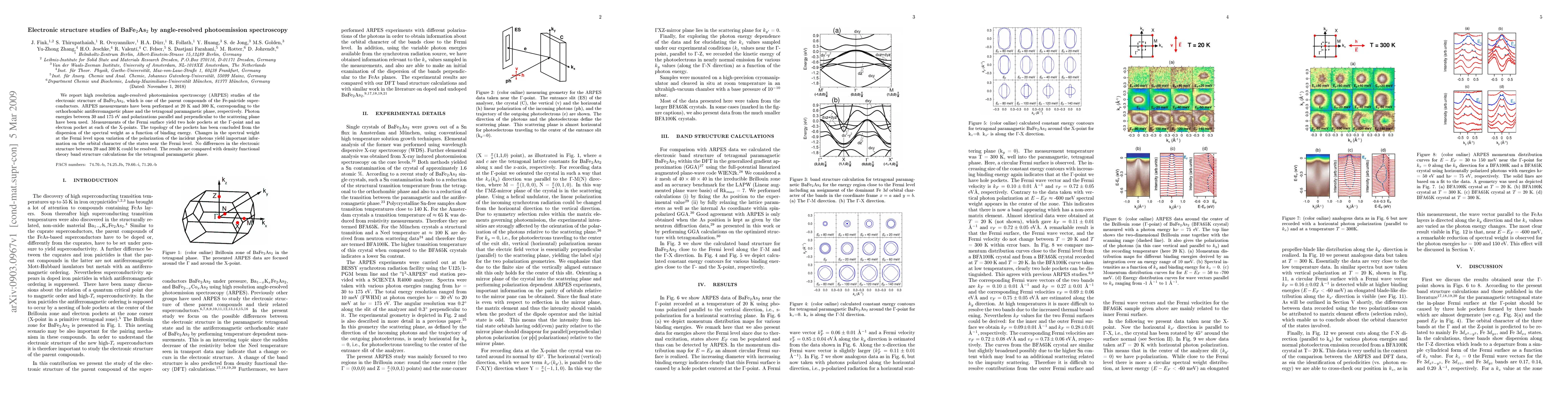 High-resolution ARPES studies of BaFe$_2$As$_2$ reveal a Fermi surface with two hole pockets and an electron pocket, with no significant electronic structure changes between 20 K and 300 K. Comparisons with DFT calculations corroborate the orbital character of near-Fermi-level states.