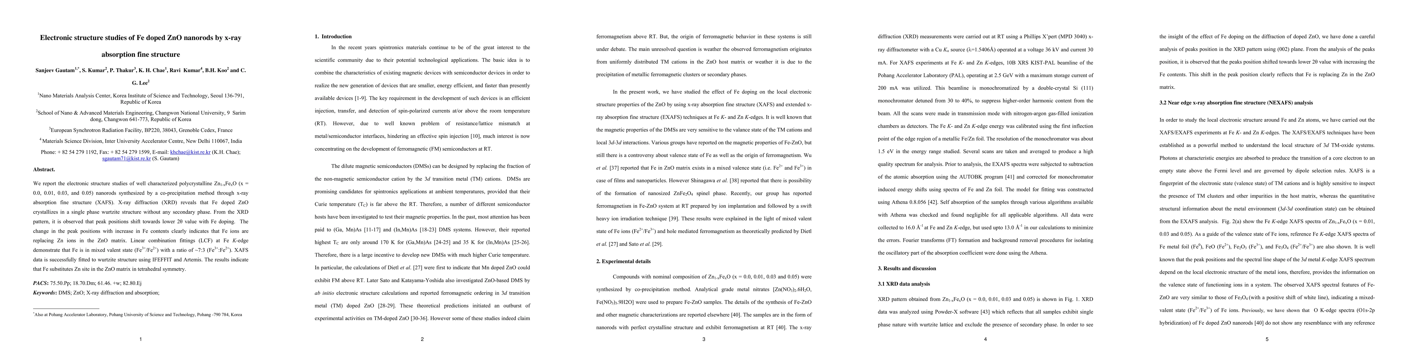 The research utilized X-ray absorption fine structure (XAFS) and X-ray diffraction (XRD) to study the electronic structure of Fe-doped ZnO nanorods synthesized via a co-precipitation method.