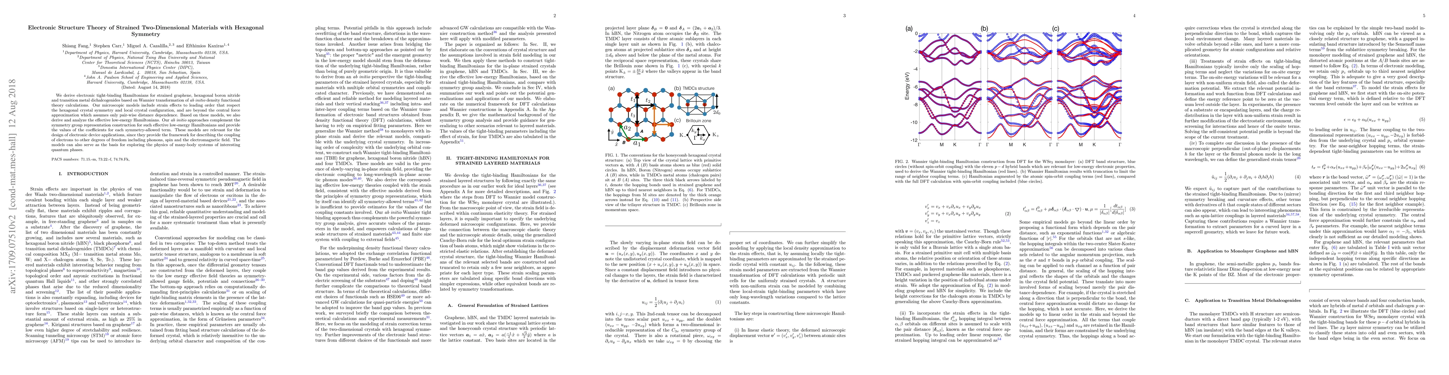 We derive electronic tight-binding Hamiltonians for strained graphene, hexagonal boron nitride and transition metal dichalcogenides based on Wannier transformation of {\it ab initio} density functional theory calculations. Our microscopic models include strain effects to leading order that respect the hexagonal crystal symmetry and local crystal configuration, and are beyond the central force approximation which assumes only pair-wise distance dependence. Based on these models, we also derive and analyze the effective low-energy Hamiltonians. Our {\it ab initio} approaches complement the symmetry group representation construction for such effective low-energy Hamiltonians and provide the values of the coefficients for each symmetry-allowed term. These models are relevant for the design of electronic device applications, since they provide the framework for describing the coupling of electrons to other degrees of freedom including phonons, spin and the electromagnetic field. The models can also serve as the basis for exploring the physics of many-body systems of interesting quantum phases.