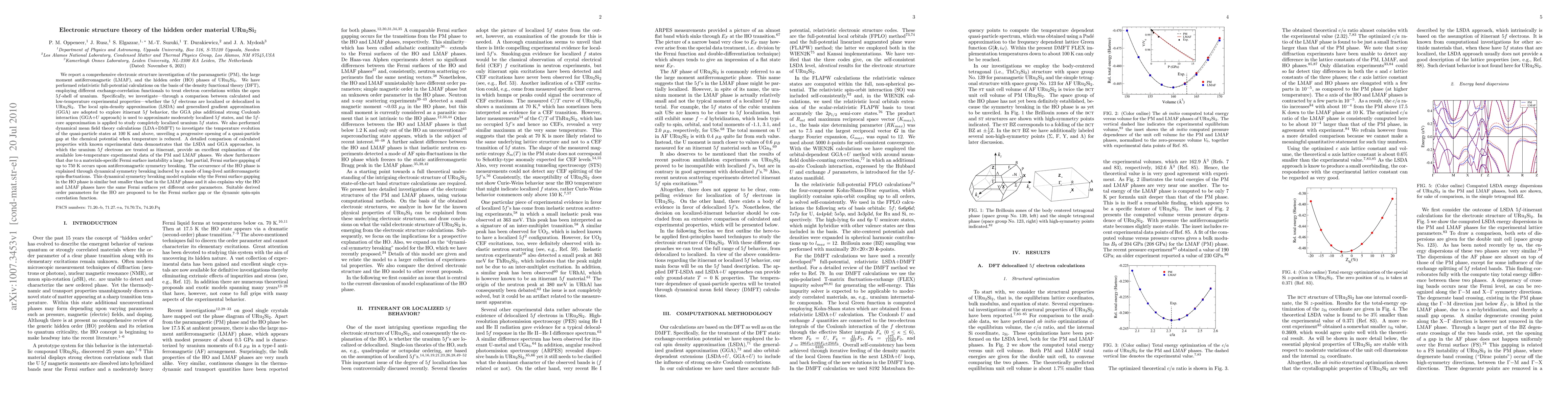 We report a comprehensive electronic structure investigation of the paramagnetic (PM), the large moment antiferromagnetic (LMAF), and the hidden order (HO) phases of URu$_2$Si$_2$. We have performed relativistic full-potential calculations on the basis of the density functional theory (DFT), employing different exchange-correlation functionals to treat electron correlations within the open $5f$-shell of uranium. Specifically, we investigate---through a comparison between calculated and low-temperature experimental properties---whether the $5f$ electrons are localized or delocalized in URu$_2$Si$_2$. We also performed dynamical mean field theory calculations (LDA+DMFT) to investigate the temperature evolution of the quasi-particle states at 100~K and above, unveiling a progressive opening of a quasi-particle gap at the chemical potential when temperature is reduced. A detailed comparison of calculated properties with known experimental data demonstrates that the LSDA and GGA approaches, in which the uranium $5f$ electrons are treated as itinerant, provide an excellent explanation of the available low-temperature experimental data of the PM and LMAF phases. We show furthermore that due to a materials-specific Fermi surface instability a large, but partial, Fermi surface gapping of up to 750 K occurs upon antiferromagnetic symmetry breaking. The occurrence of the HO phase is explained through dynamical symmetry breaking induced by a mode of long-lived antiferromagnetic spin-fluctuations. This dynamical symmetry breaking model explains why the Fermi surface gapping in the HO phase is similar but smaller than that in the LMAF phase and it also explains why the HO and LMAF phases have the same Fermi surfaces yet different order parameters. Suitable derived order parameters for the HO are proposed to be the Fermi surface gap or the dynamic spin-spin correlation function.