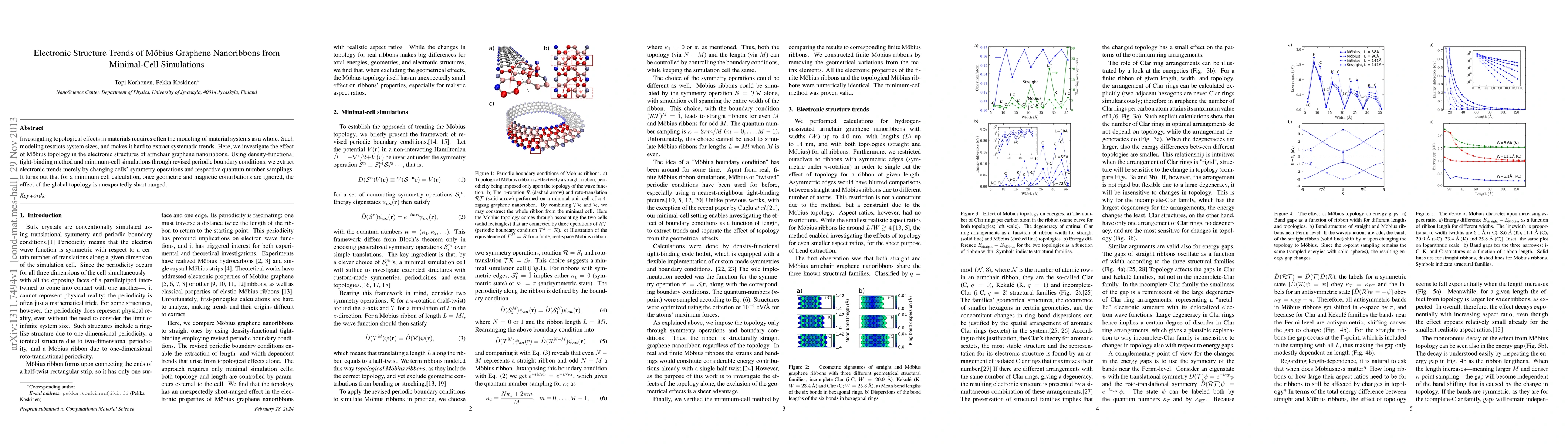 This study explores the electronic structure trends of Möbius graphene nanoribbons using minimal-cell simulations and density-functional tight-binding methods. Surprisingly, it finds that the global topological effects are short-ranged when geometric and magnetic contributions are disregarded.