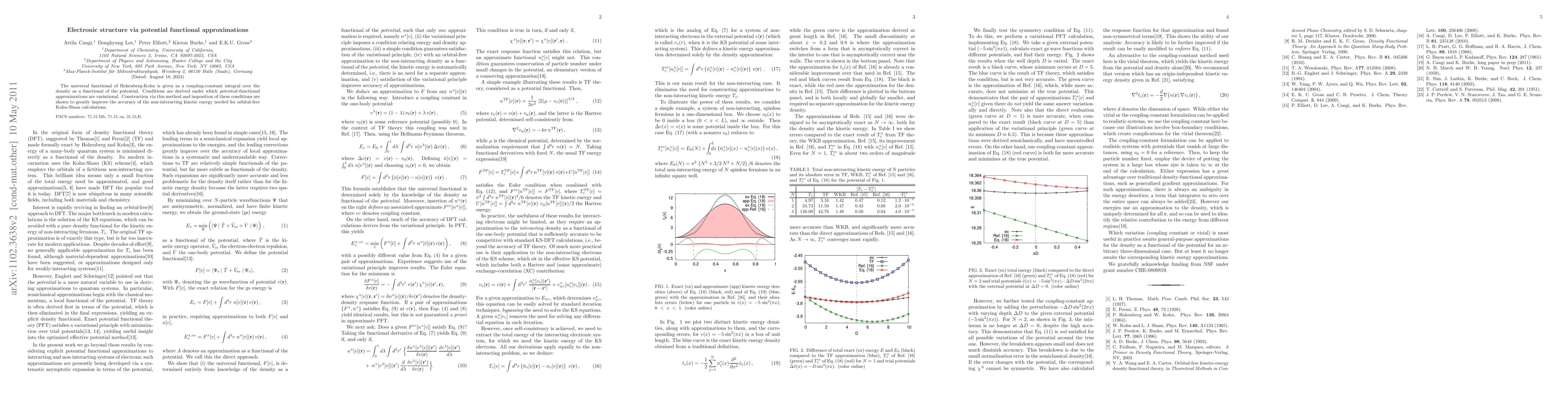 The universal functional of Hohenberg-Kohn is given as a coupling-constant integral over the density as a functional of the potential. Conditions are derived under which potential-functional approximations are variational. Construction via this method and imposition of these conditions are shown to greatly improve the accuracy of the non-interacting kinetic energy needed for orbital-free Kohn-Sham calculations.