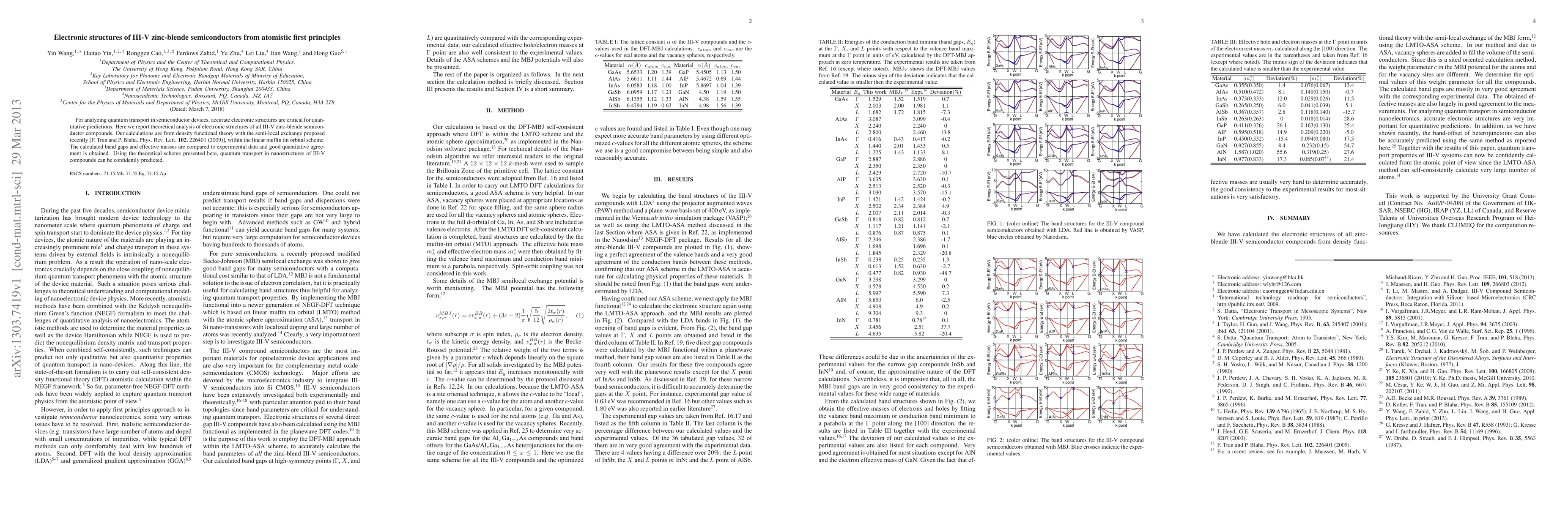 This paper presents a theoretical analysis of the electronic structures of all III-V zinc-blende semiconductor compounds using density functional theory with a semi-local exchange approach. The results show good agreement with experimental data, enabling reliable predictions of quantum transport in nanostructures of these materials.