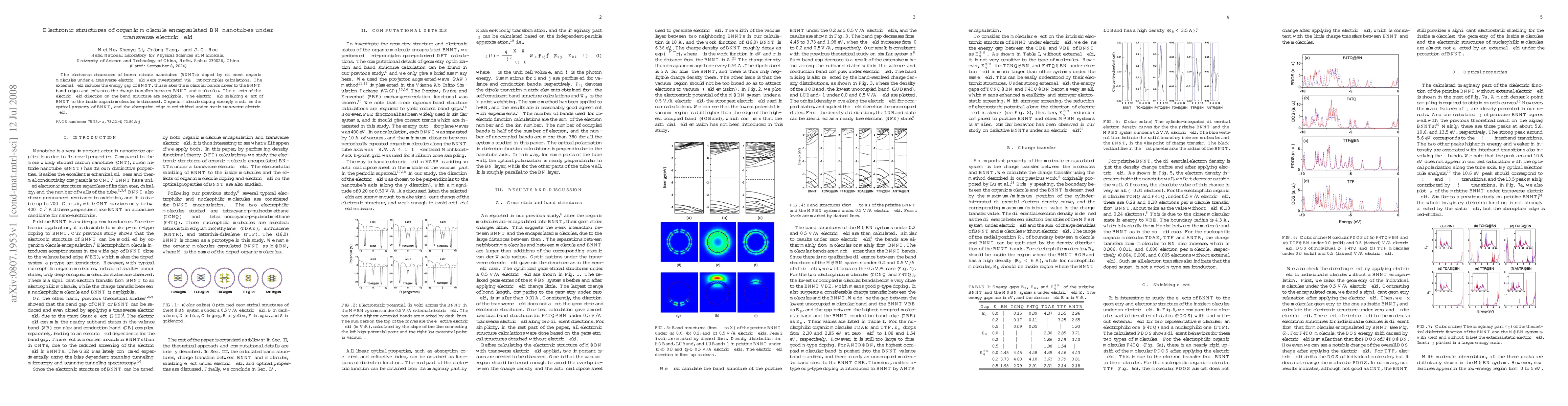Summary: First-principles calculations reveal that transverse electric fields reduce the energy gap of boron nitride nanotubes (BNNTs) doped with organic molecules, enhancing charge transfer and red-shifting the absorption edge. The field direction has minimal impact on the band structure.